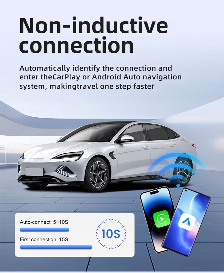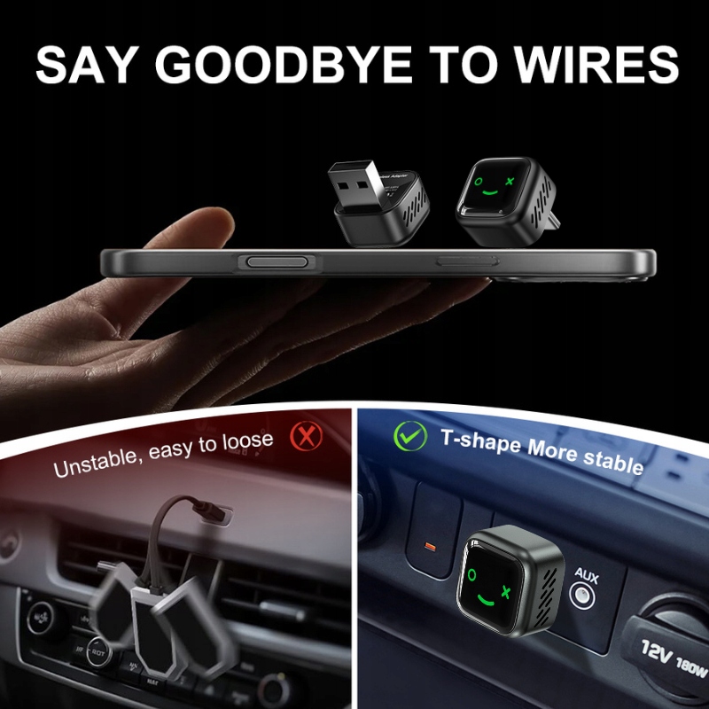 Якщо у вашому автомобілі заводська система CarPlay або Android Auto, але кабель стає джерелом розчарування , адаптер MBIT — це рішення, яке ви шукаєте. Просто підключіть пристрій до USB-порту один раз, а потім насолоджуйтеся автоматичним підключенням через Wi-Fi і Bluetooth. Ми усуваємо хаос кабелів, забезпечуючи комфорт і безпеку.