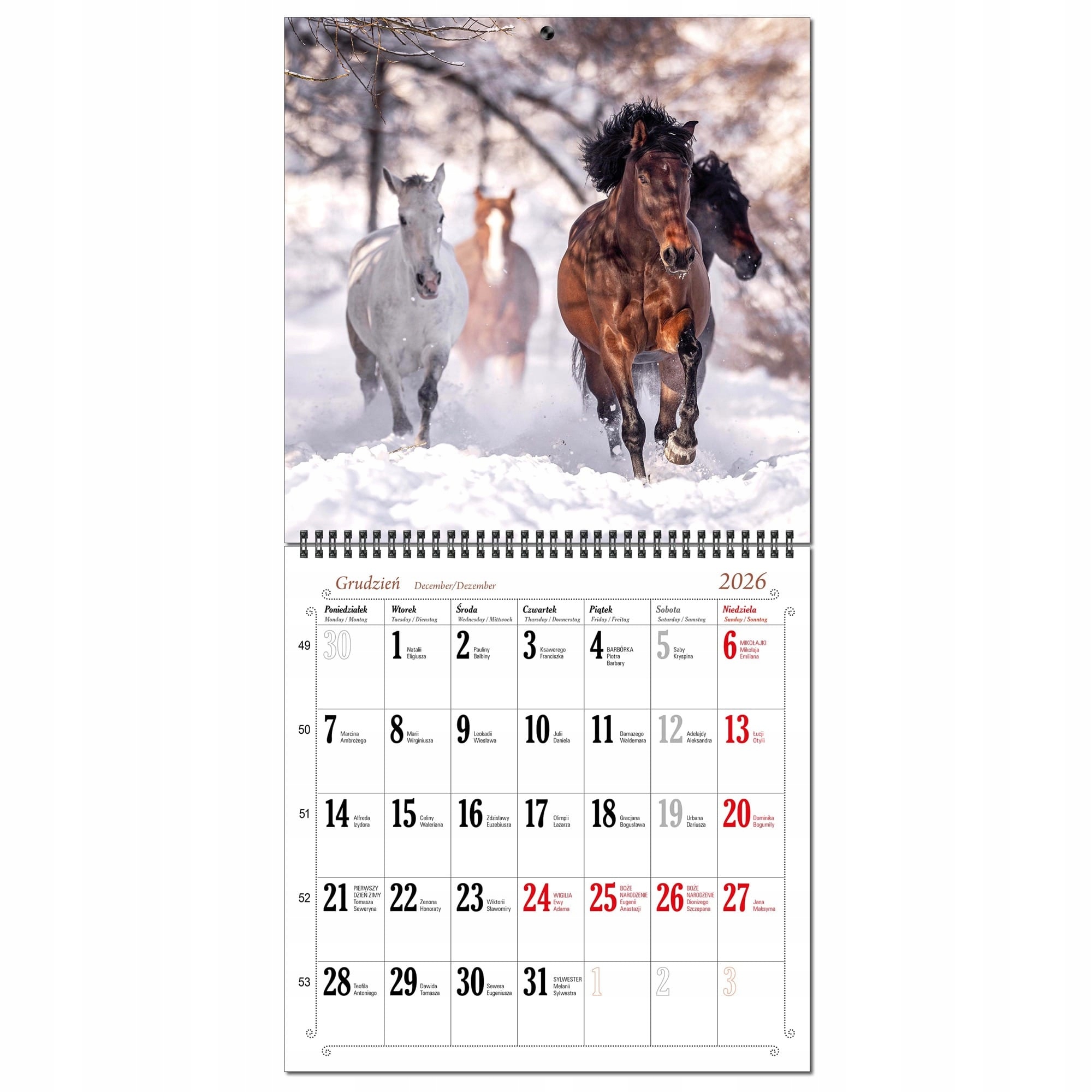 2026 настінний календар великий 30 х 60 см 13 дощок КОНІ