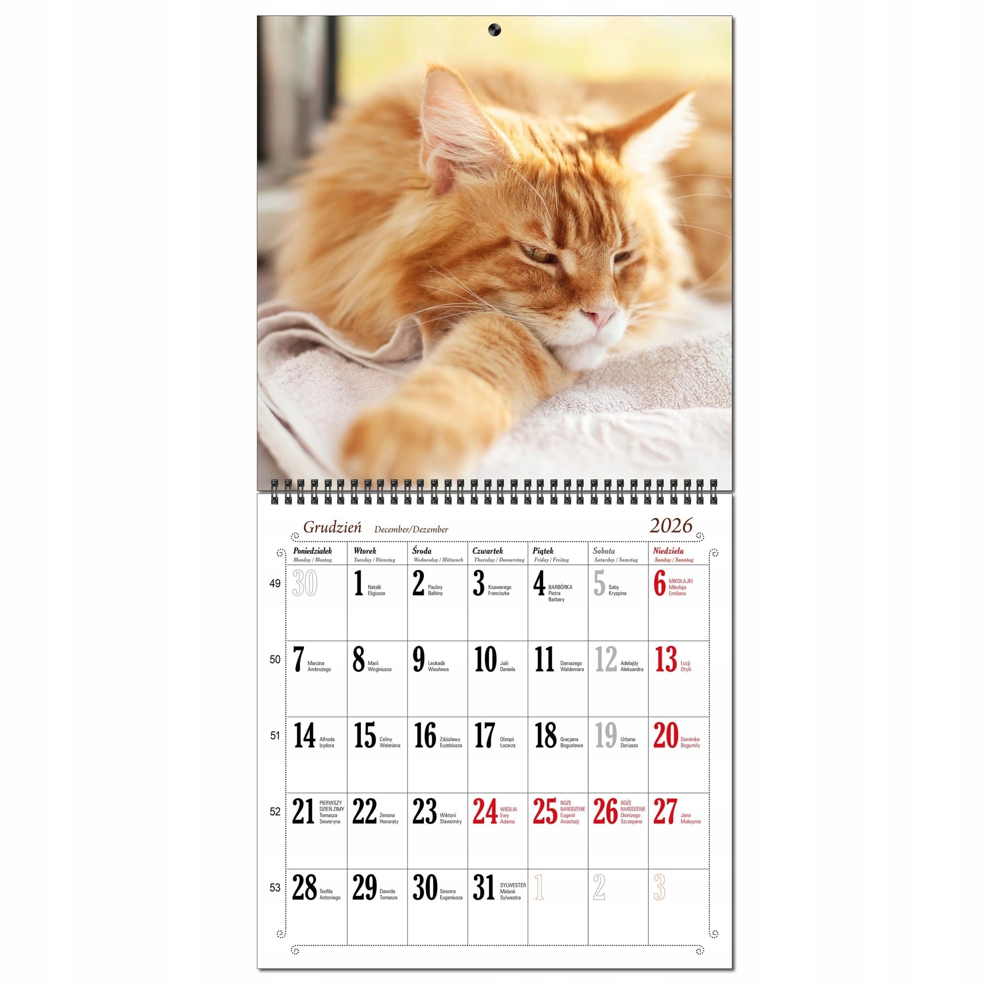 Календар 2026, настінний, великий, 30х60 см, 13 дощок, КОТИ