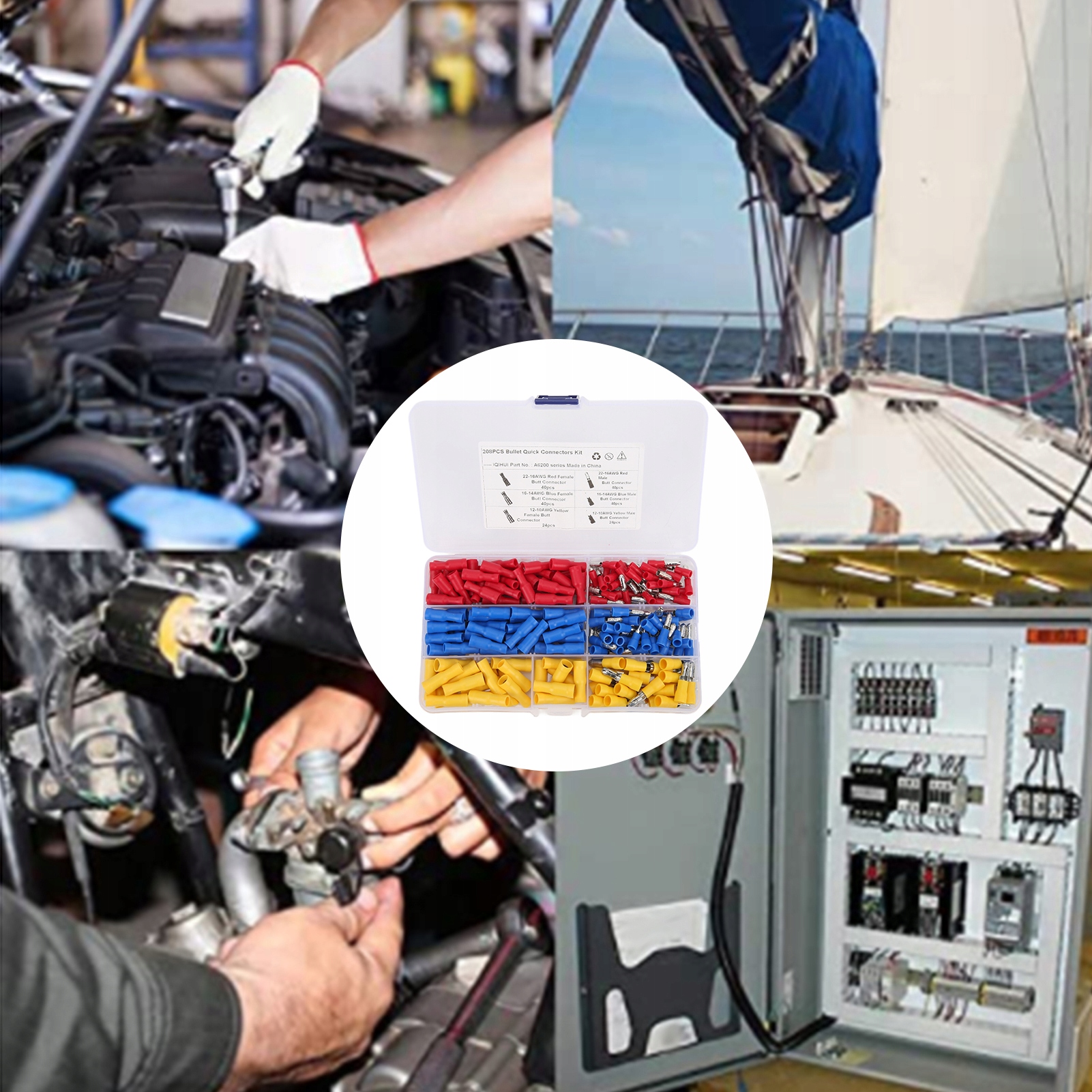 3. Він містить 40 шт. 22-16AWG роз'єму Червоних чоловіків, 40 шт. 22-16Awg Червоного роз'єму жіночого 40 шт., 40 шт. 16-14AWG синього роз'єму чоловічої статі, 40 шт. 16-14AWG синього роз'єму жіночого, 24 шт. 12-10Awg Жовтого роз'єму чоловічої статі, 24 шт. 12-10Awg Жовтого Жіночого роз'єму. Виготовлений з високоякісного мідного та ПВХ -матеріалу, він стійкий до масла, стійкий до корозії та постійне для використання