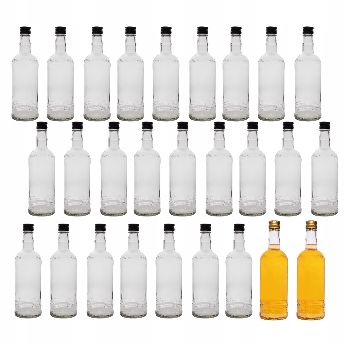 Скляні пляшки можна використовувати для зберігання різних видів алкоголю, таких як горілка, віскі, ром, джин, лікери тощо.