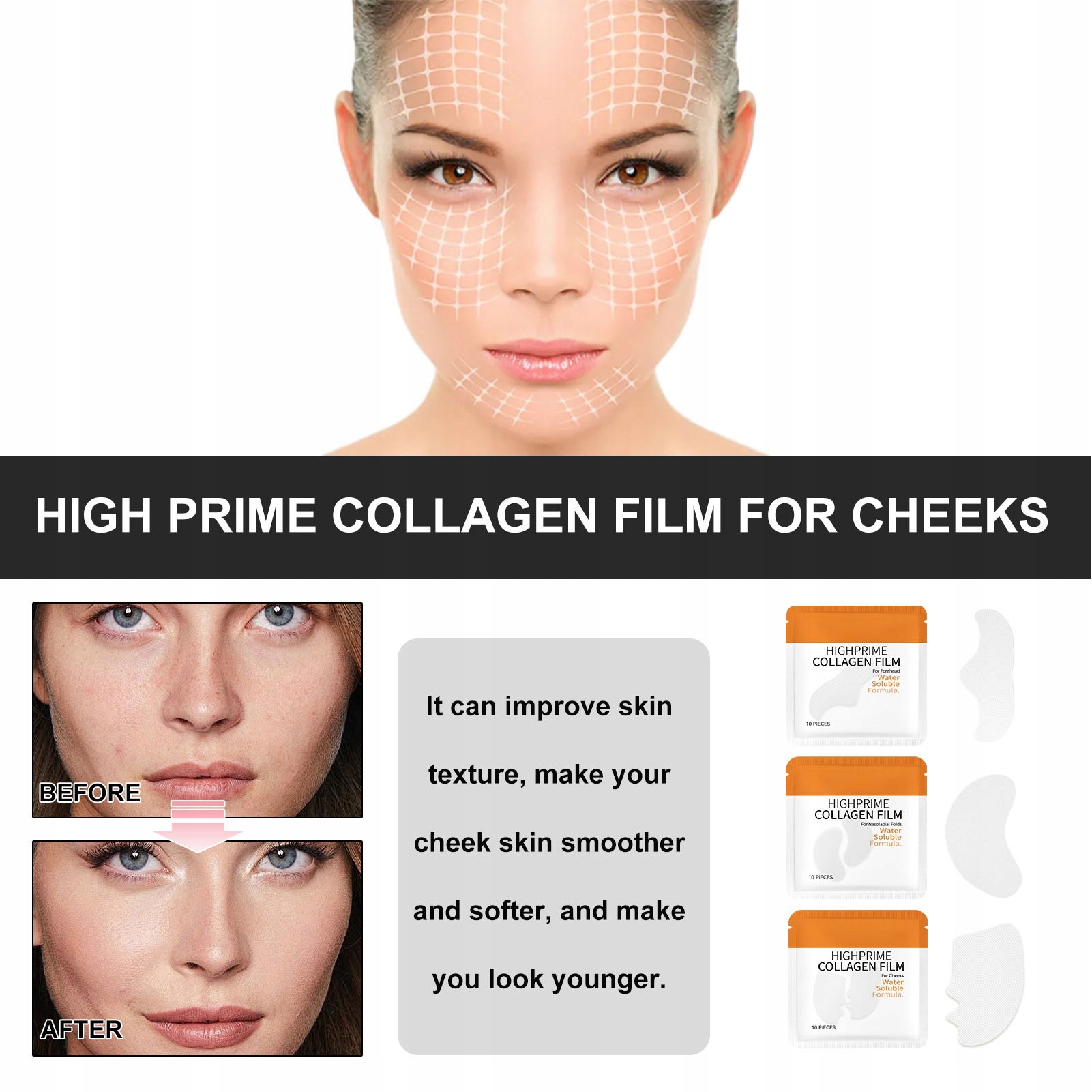 2. Зменшення тонких ліній: мінімізуйте появу тонких ліній і зморшок за допомогою колагенових плівок. Плівки, розроблені для певних зон, схильних до утворення зморшок, допомагають покращити текстуру шкіри, завдяки чому ваше обличчя виглядає гладкішим, свіжішим і молодшим.