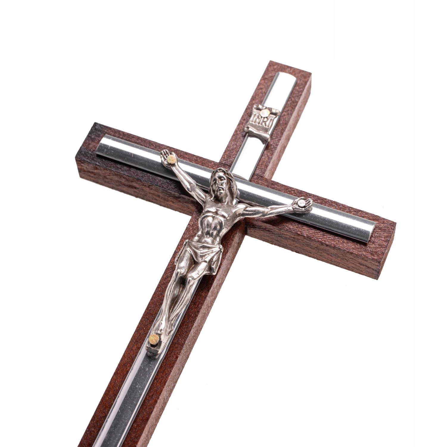 20см Дерев'яний хрест на стіні із золотою смужкою СУПЕР