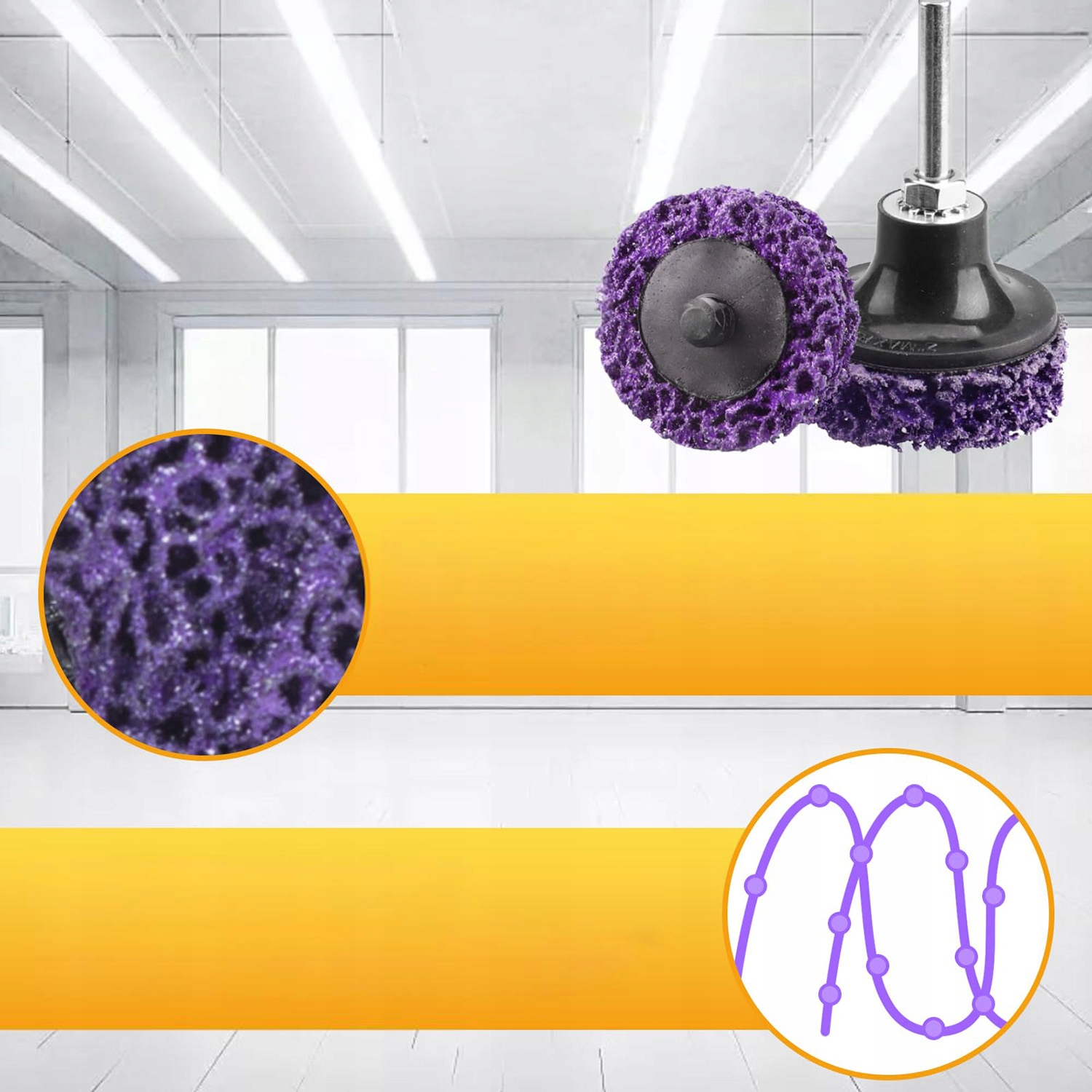 *Ідеально підходить для шліфування контактних поверхонь, напр. видалення задирок з масляних труб, видалення фарби, шліфування точок зварювання, видалення корозії та іржі, точне шліфування, обробка металевих поверхонь, обробка деталей тощо.