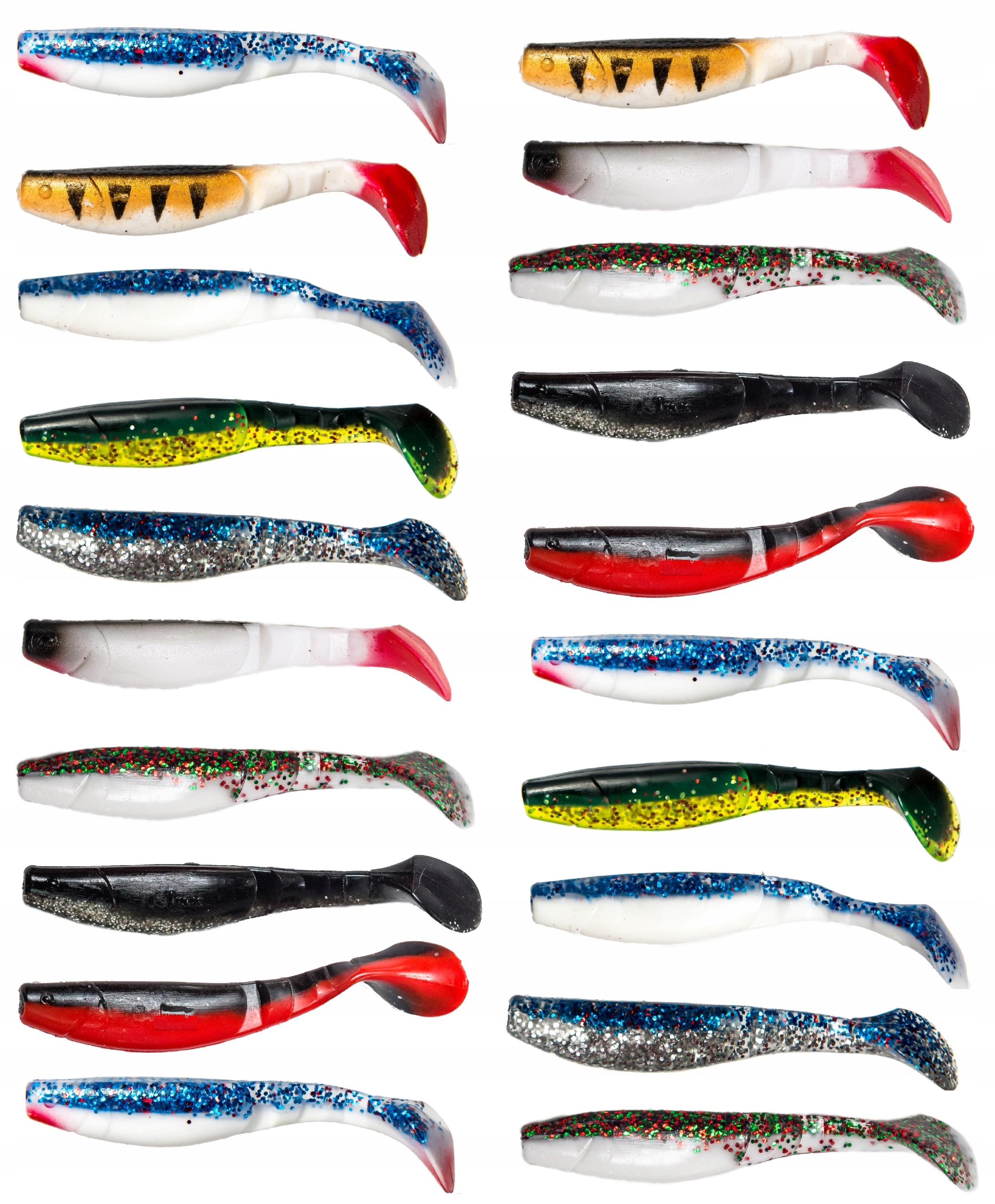 Перевірені каучуки на різних рибальських угіддях. Дивовижний колір, їх ефективність підтверджена багато разів. Чудовий дизайн і кольори. М'яка модель, призначена для лову великого судака, щуки та окуня. Ви можете встановити його за допомогою джиг-головки, що забезпечує чудову роботу. Дуже природна робота під водою. Смертельна гума для всіх хижаків. Гуми характеризуються агресивною роботою. Виготовлений з м'якої та еластичної гуми. У галереї представлені зразки кольорів, ми вибираємо найпривабливіші моделі з наявних на даний момент.