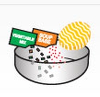 1. Помістіть інгредієнти - покладіть спецію в суп і овочеву суміш в мікрохвильову піч, а потім додайте макарони зверху.
