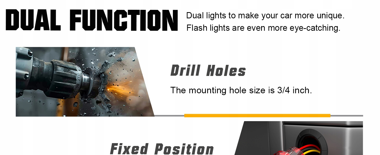 Ці бічні контурні світильники легко встановити без гвинтів. 2-провідне з'єднання: Чорний кінець кабелю та червоний кінець кабелю. Ці світильники також можна увімкнути після того, як повернути кабелі, тому вам не доведеться хвилюватися, що проблема не ввімкнеться після повернення кабелів.