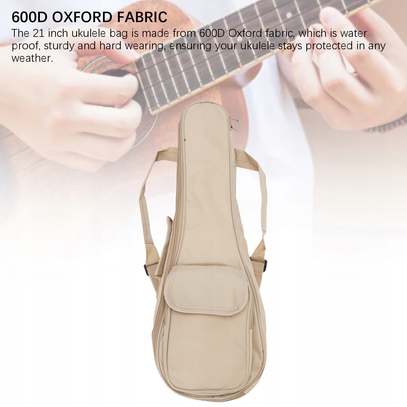 1. ТКАНИНА OXFORD 600D: 21-дюймова сумка для укулеле виготовлена з тканини Oxford 600D, яка є водонепроникною, міцною та довговічною, тож ваша укулеле буде захищена за будь-якої погоди.