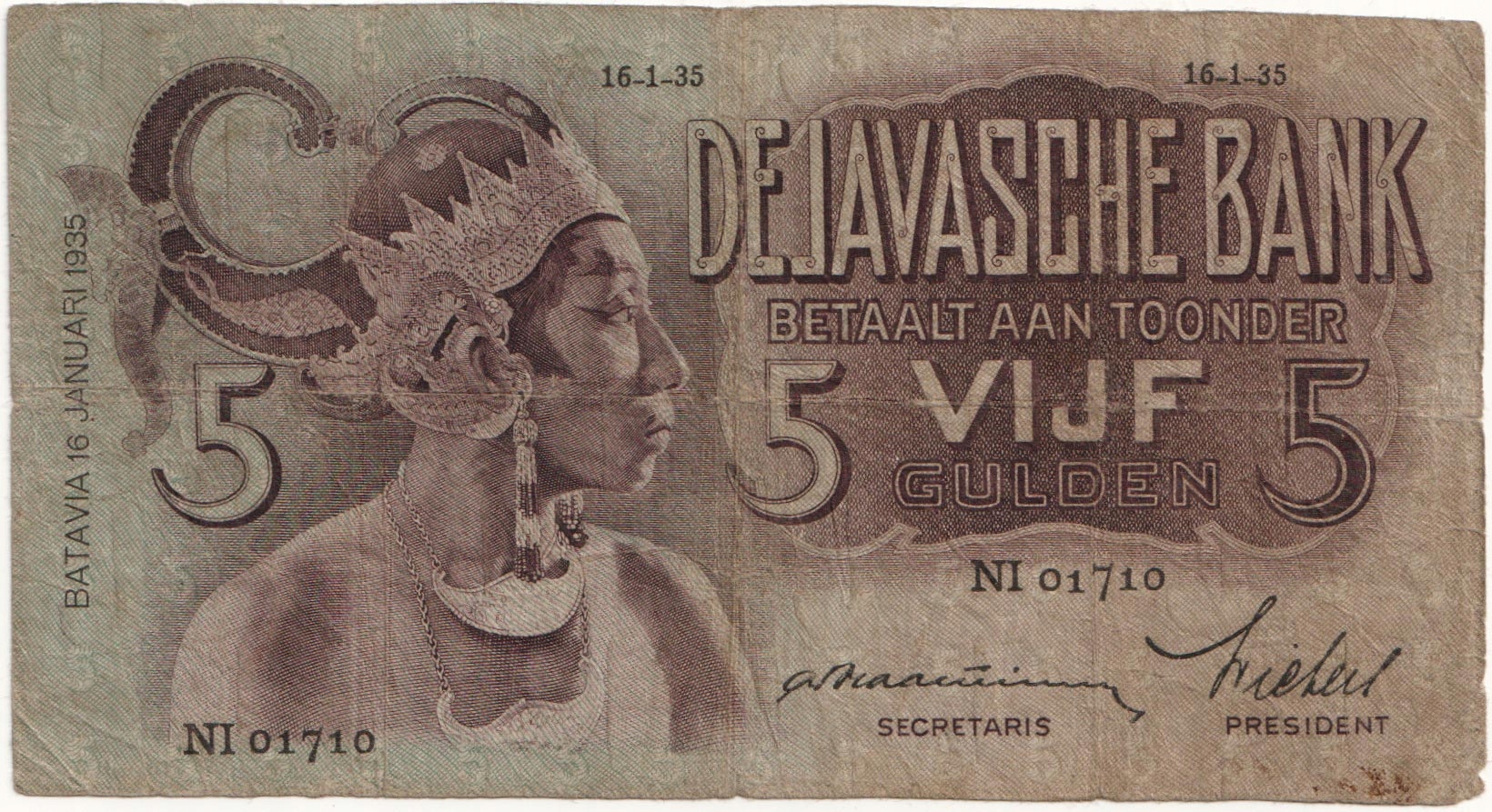 21.aj.Hol.Indie Wsch., 5 Гульденів 1935, св.3/3+