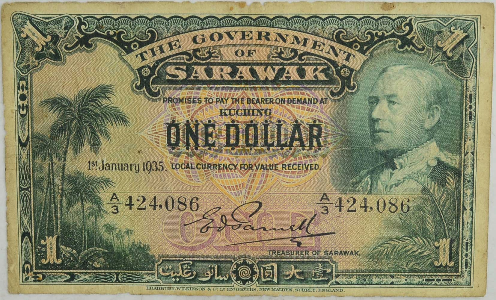 21.fu.Sarawak , 1 долар 1935 b.rzadki , St.3/3-