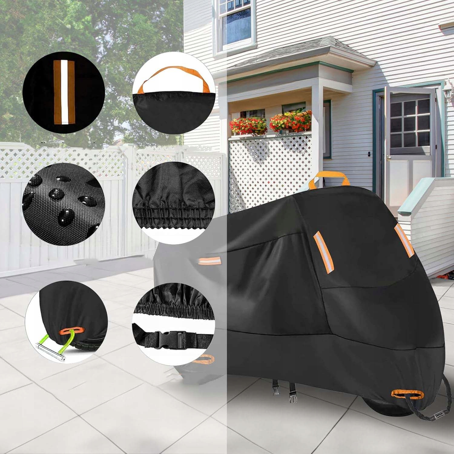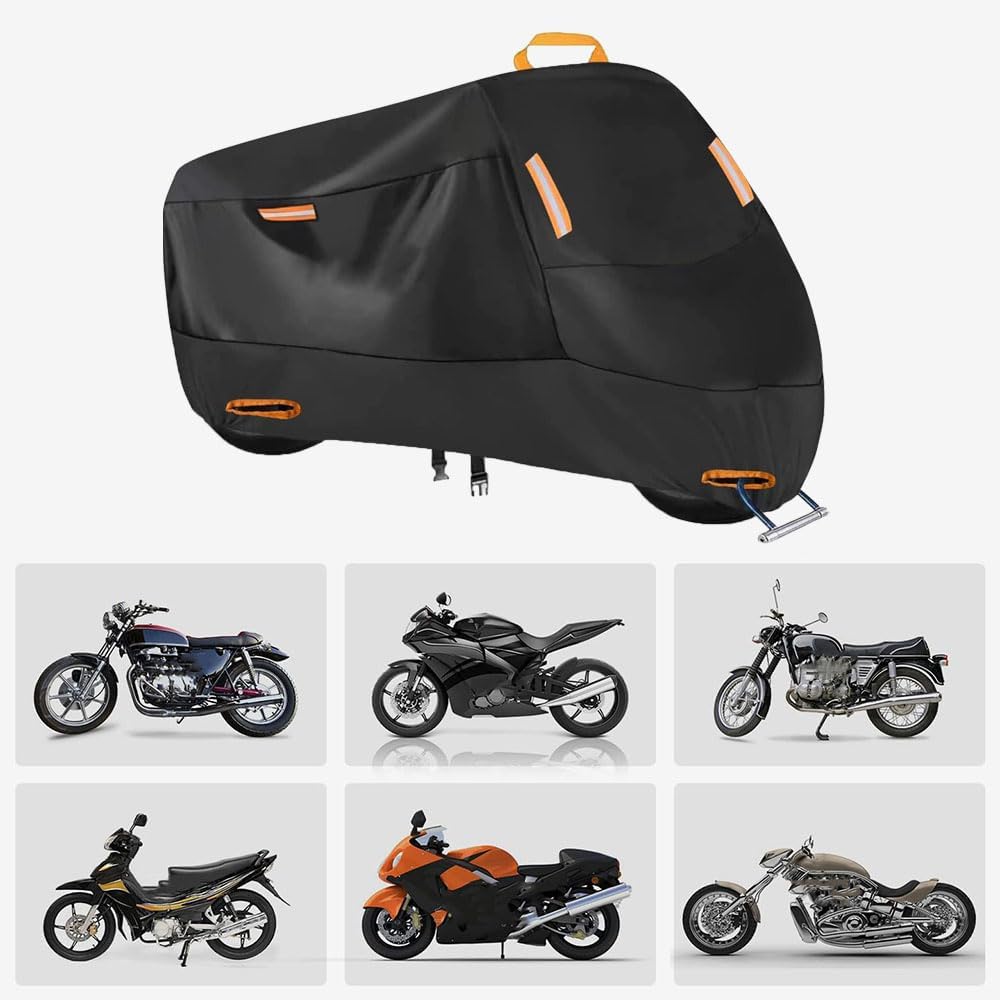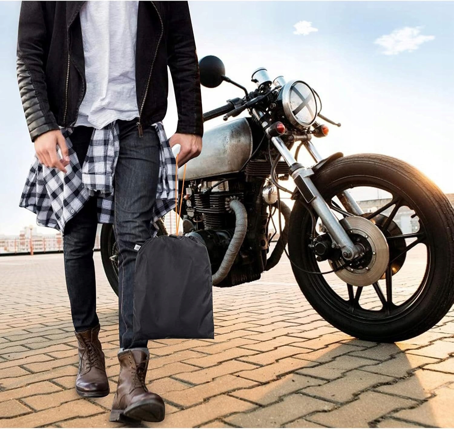💧💧💧Водонепроникний чохол для мотоцикла 210D: Цей водонепроникний чохол для мотоцикла виготовлено з тканини Оксфорд 210D для чудової водонепроникності. Витримує тиск води до 2000 мм, захищаючи мотоцикл від дощу, пилу та несприятливих погодних умов. Закриває мотоцикл зверху вниз. Примітка. Будь ласка, переконайтеся, що чохол на 10 см довший за фактичну довжину мотоцикла.