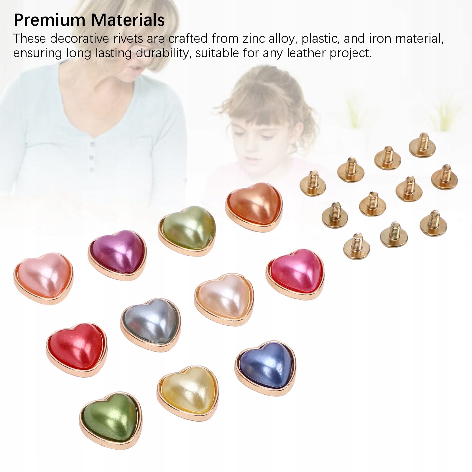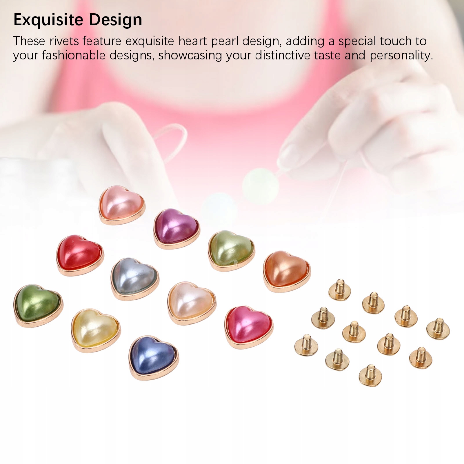 4. Легке встановлення: ці перлинні заклепки у формі серця можна легко встановлювати та знімати за допомогою викрутки (не входить у комплект), закручуючи річку в гвинт для забезпечення надійної фіксації.