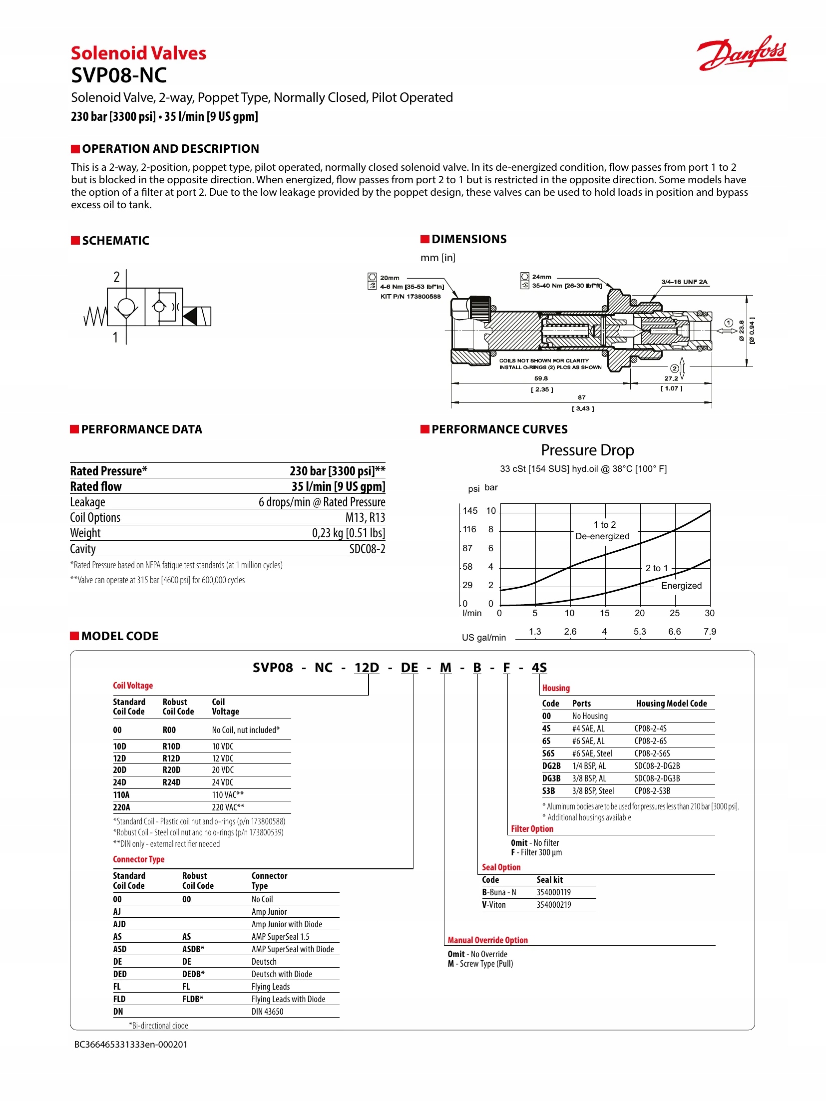 2/2 NC розподільник SVP08-NC-00-00-BF-00 P/N; 805315019 - Danfoss