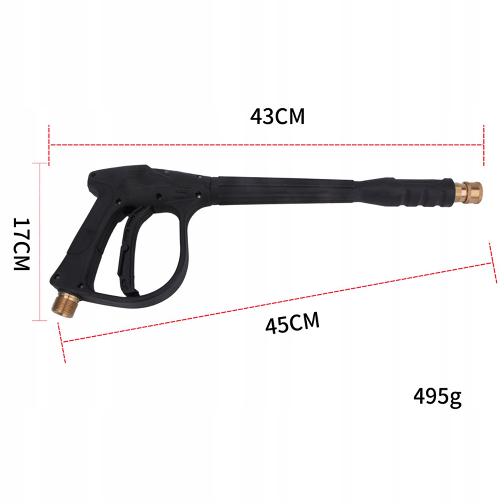 Гуманізація дизайну: збирайте довгі чи короткі мийні пістолети відповідно до ваших потреб. Наш запасний пістолет для мийки високого тиску підходить для більшості газових та електричних мийних машин із роз’ємом M22. Пістолет має фіксатор курка, який запобігає випадковому пострілу. Ручка розроблена для більшого комфорту та кращого зчеплення.