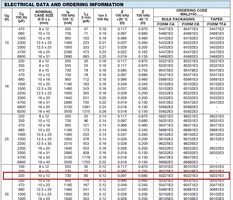 220UF 35V 105 'Вішай Низький імпеданс тривалої життя __X1