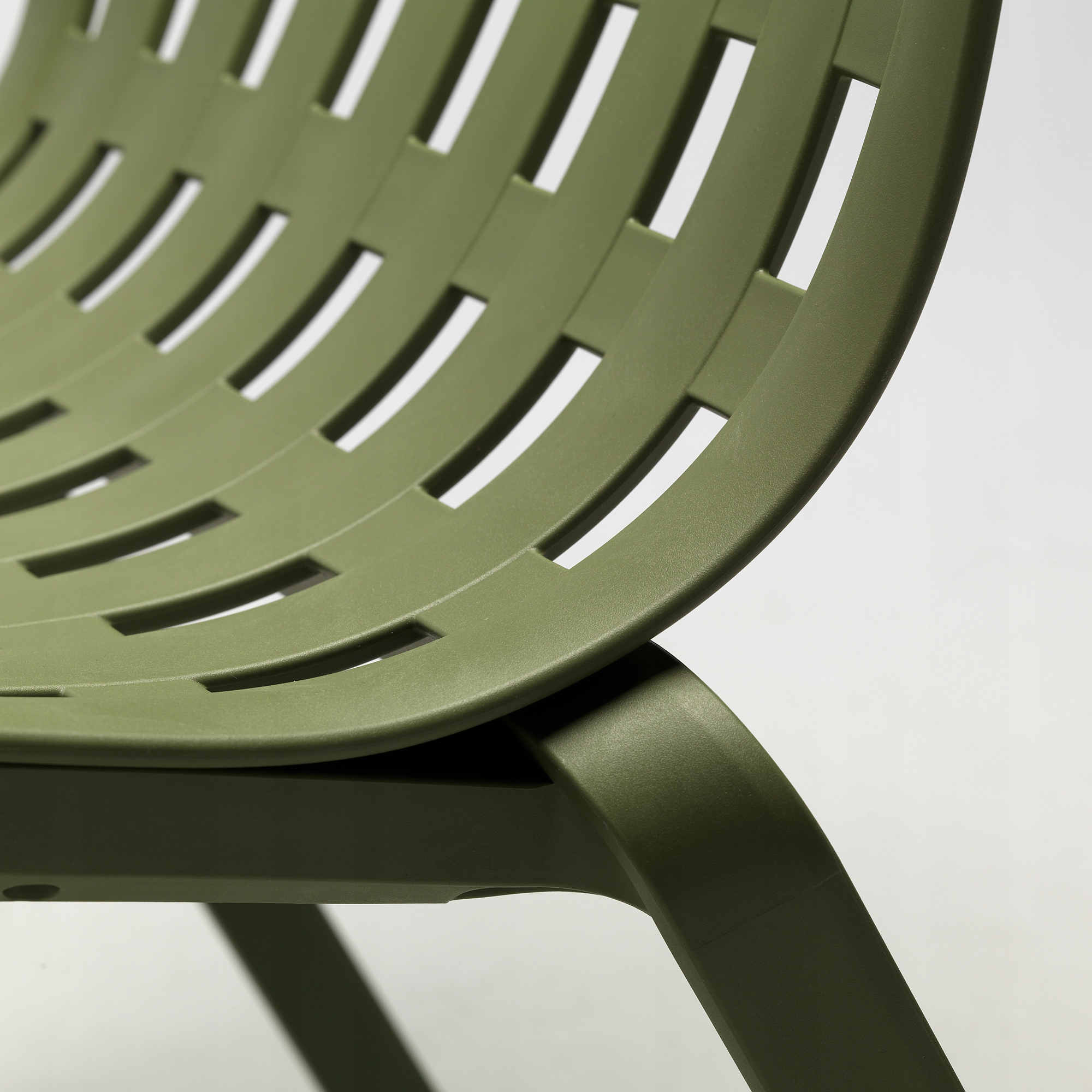 Садове крісло Folio Agave — це предмет меблів, який підходить як для внутрішнього, так і для зовнішнього використання, виготовлений із високоякісного пофарбованого поліпропілену, посиленого скловолокном. Це гарантує надзвичайну довговічність і стійкість. Колір залишається таким же, як і на момент виготовлення, незалежно від часу. Матеріал, з якого вони виготовлені, був захищений антистатичними та анти-УФ добавками для повного захисту від мінливих погодних умов. Спинка крісла регулюється, що забезпечує оптимальний комфорт використання.