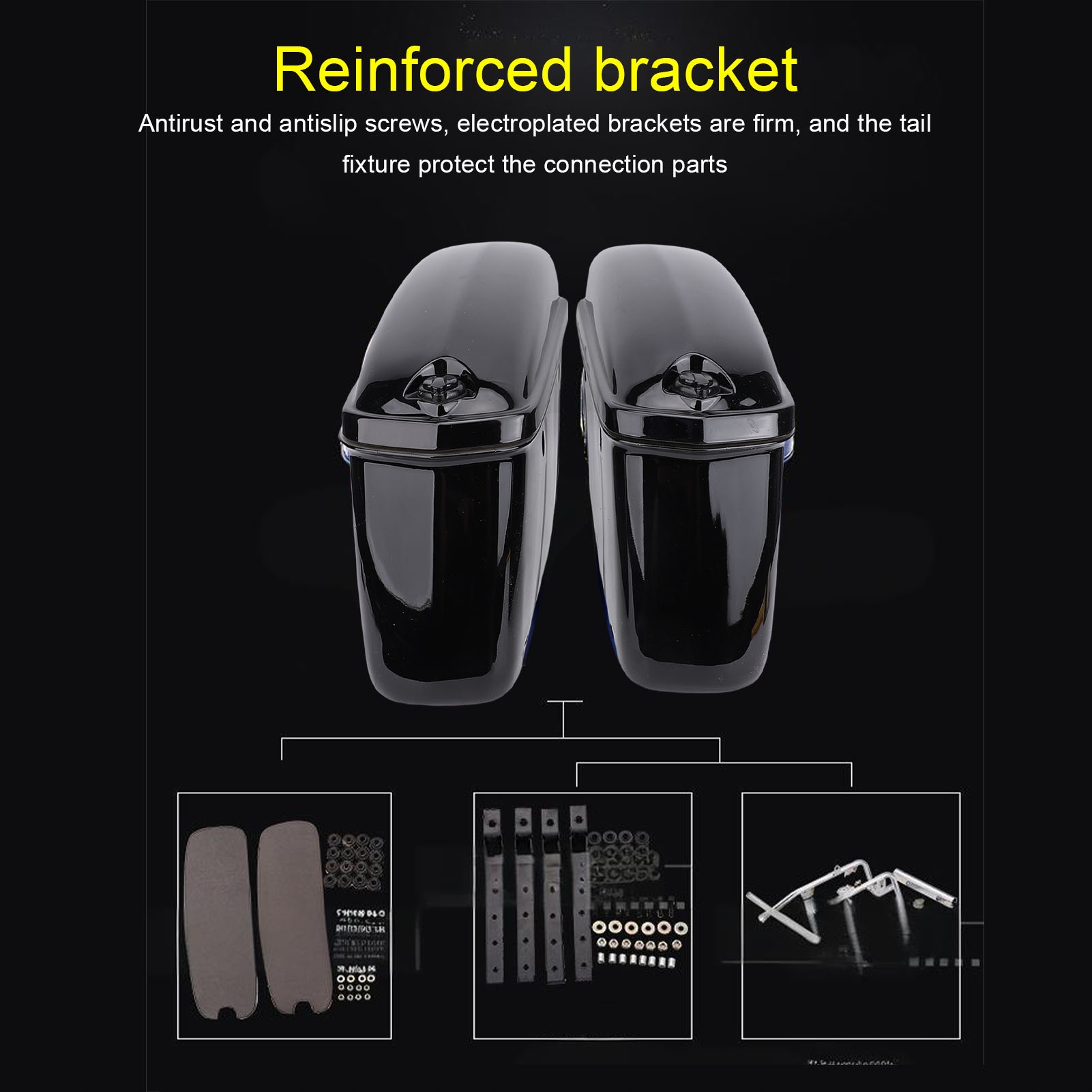 5. Легка установка: Сумка розірвана мотоциклом, зазвичай встановлюється з обох боків заднього коа. Він не пристосований до будь -якого конкретного мотоцикла, тому перевірте розміри дужки на сумісність, і можуть знадобитися модифікації (не включати кронштейни встановлення).
