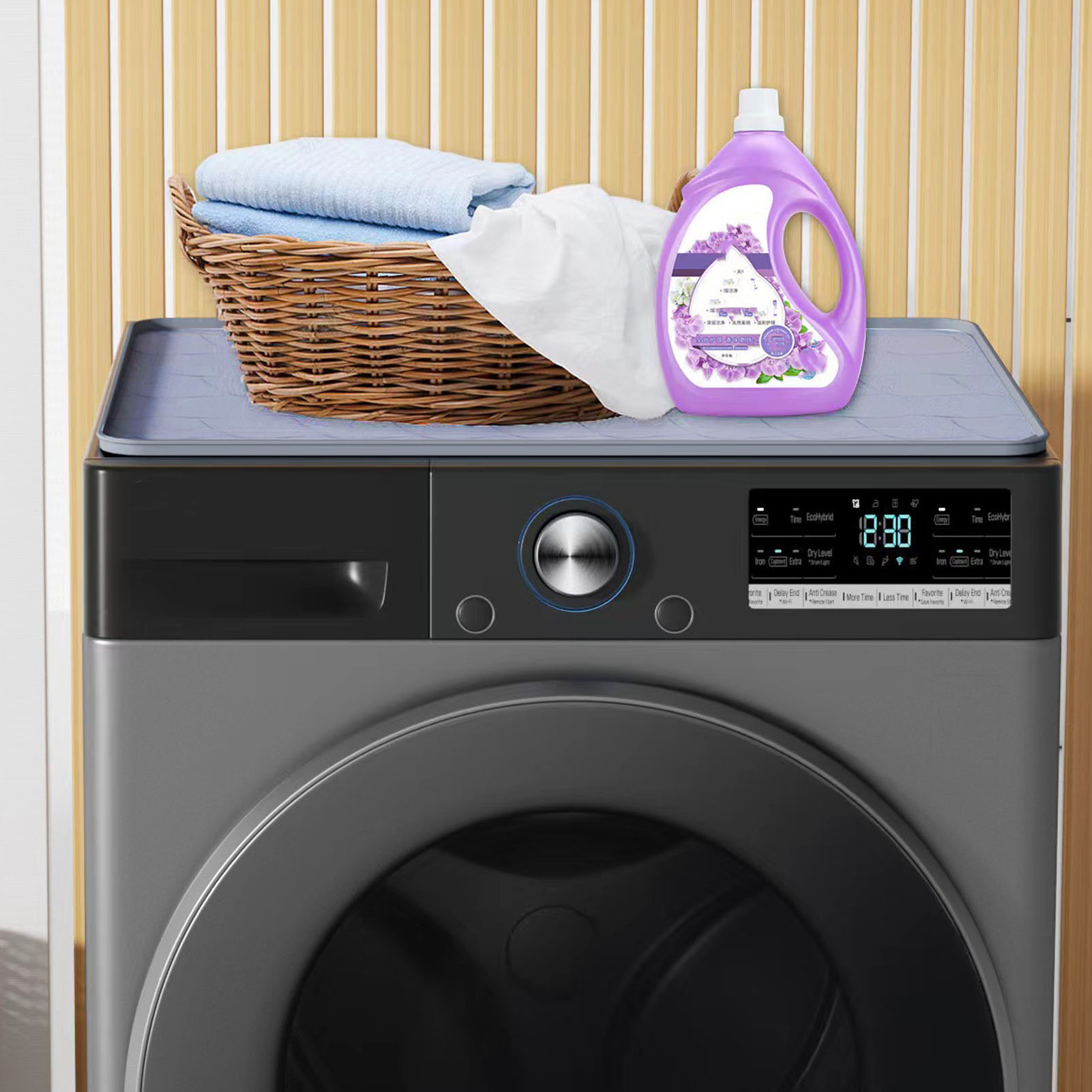 2. Матеріал: захисний килимок для верхньої частини пральної або сушильної машини виготовлений із силіконового матеріалу, який не знебарвлюється та не деформується, ефективно запобігаючи пошкодженню від пилу, подряпин і щоденного зносу.