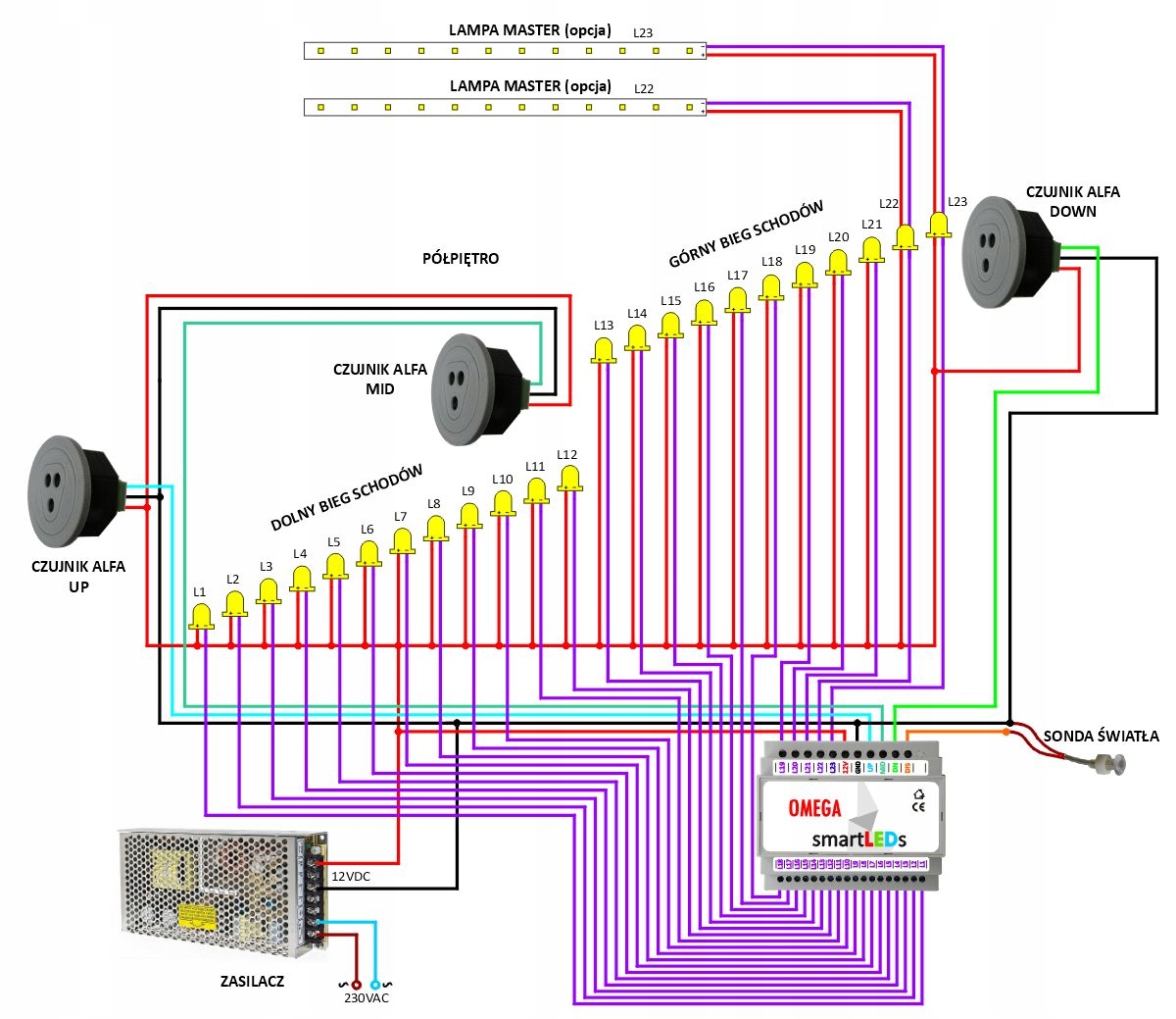 Датчики ALFA та DELTA smartLEDs є єдиними відомими нам датчиками, які дійсно придатні для виявлення руху на сходах. Вони були розроблені нами у відповідь на прогалину на ринку в цій галузі та на 100% виробляються в Польщі. Це активні дифузійні оптичні датчики, що працюють в інфрачервоному світлі, невидимому для ока. Вони мають одноелементну конструкцію, чітко визначений регульований діапазон, вузький кут виявлення та відхилений оптичний шлях, що усуває відбиття. Доступні 2 режими роботи забезпечують правильну роботу незалежно від того, відкриті чи закриті сходи (проходи) з білою стіною навпроти. Невеликі розміри дозволяють непомітно встановити, а також є можливість вибрати колір кришки датчика. Датчики мають дуже хороше співвідношення ціни та якості.