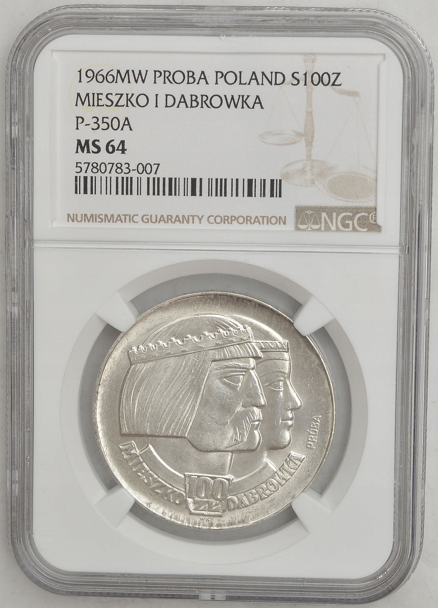 23.PRL, 100 PLN 1966 Бюст МЕШКО та ДМБРУВКА NGC MS64