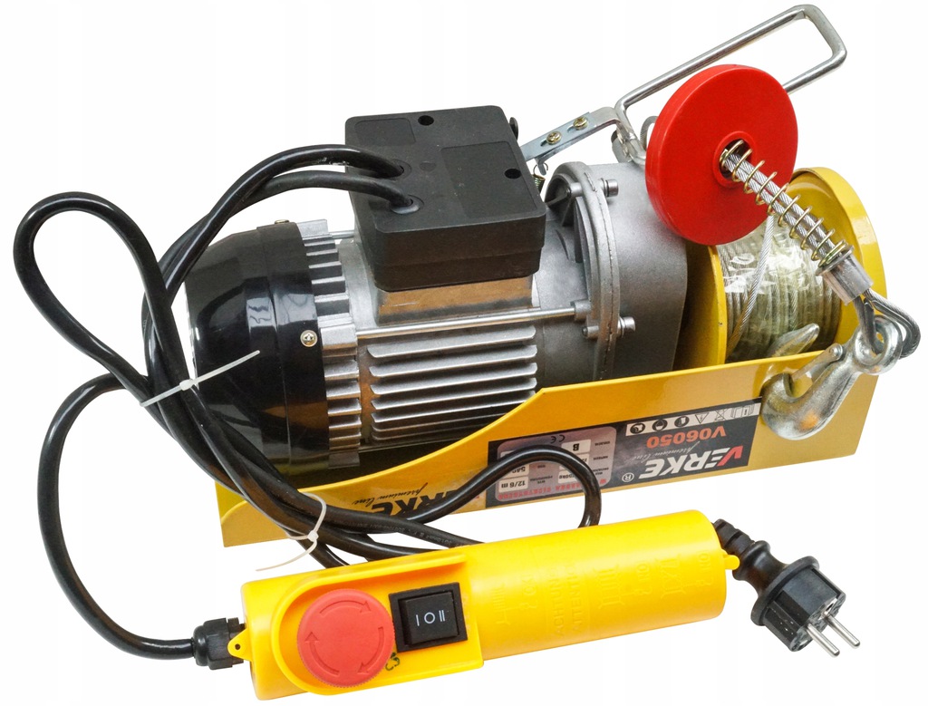 Професійна конструкція кабельної конструкції Verke Premium Line. Електрична лебідка - це пристрій, який транспортує навантаження у вертикальній площині. Зазвичай використовується для будівництва та ремонту будинків та для роботи на механічних веб -сайтах. Двигун живлення використовується для приводу, що живиться від мережі 230 В. Робочий елемент - це сильна мотузка, виготовлена зі сталевого дроту. Пристрій має керуючу консоль, розміщену на довгому електричному кабелі та автоматичному перемиканню перекидання. Потужний двигун дозволяє швидко переносити предмети без надмірних зусиль на стороні обслуговування. Сильний гачок легко прикріпити до навантаження, він має захисну засувку. Незамінний при тягненні ваги на великій висоті, зберігаючи максимальну безпеку.