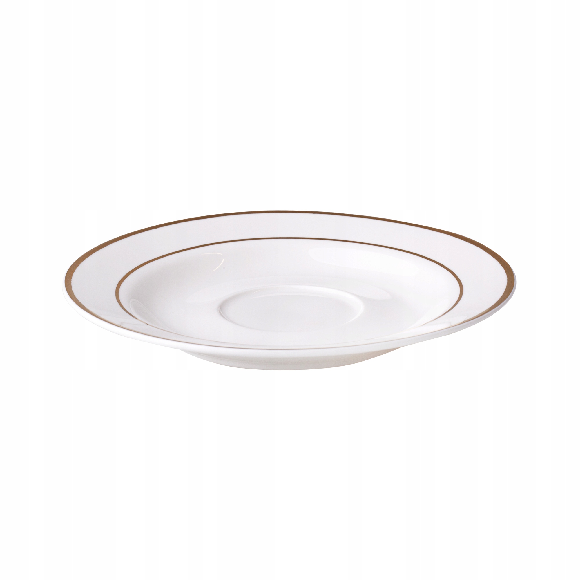 Блюдце 12,5 см з колекції Aura Gold, біле з ніжним золотим акцентом, Ambition. Виключно елегантна лінія порцеляни, прикрашена ніжними золотистими лініями. Завдяки класичній формі та витонченому декору він чудово вписується як у традиційний, так і в сучасний інтер’єр. Унікальна порцеляна New Bone China виглядає дуже ексклюзивно, надаючи кожному інтер’єру унікальний характер.