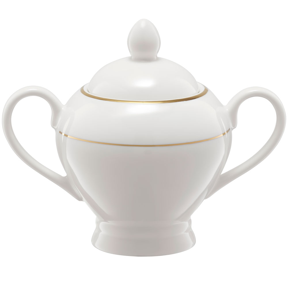 Цукорниця з кришкою з колекції Aura Gold, біла з ніжним золотим акцентом, Ambition.