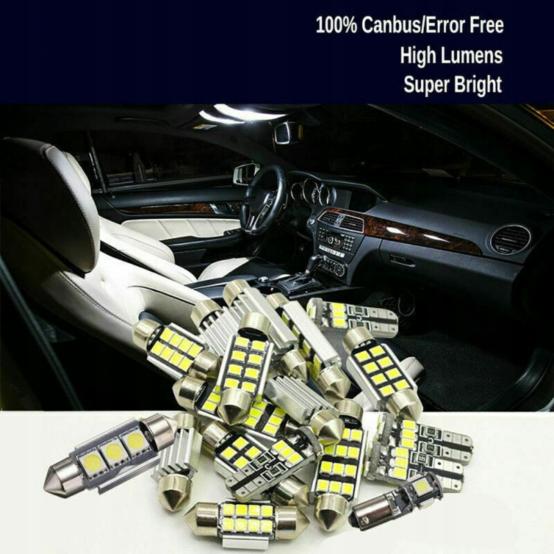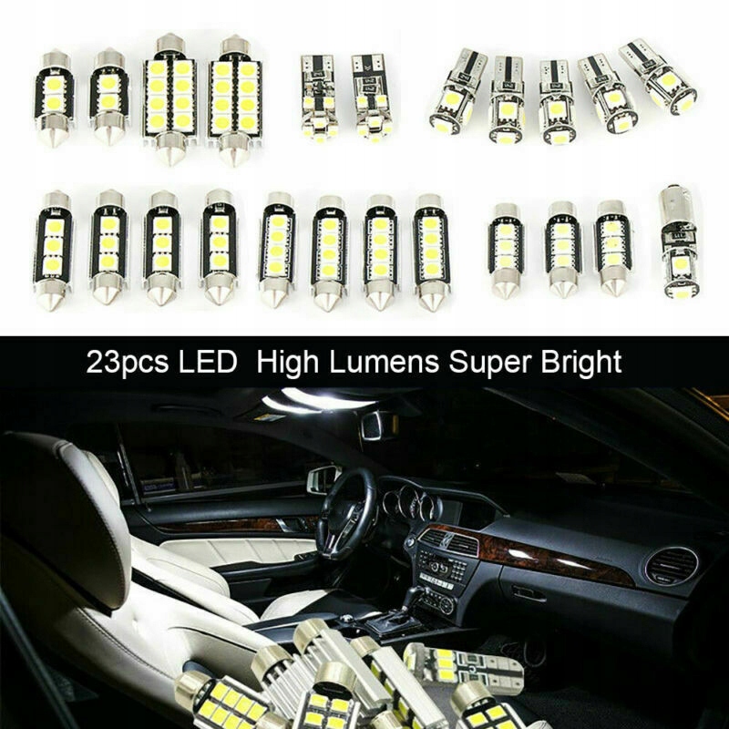 23-частинний набір лампочок для освітлення внутрішніх приміщень світлодіодного автомобіля, багажника, номерних знаків, карт