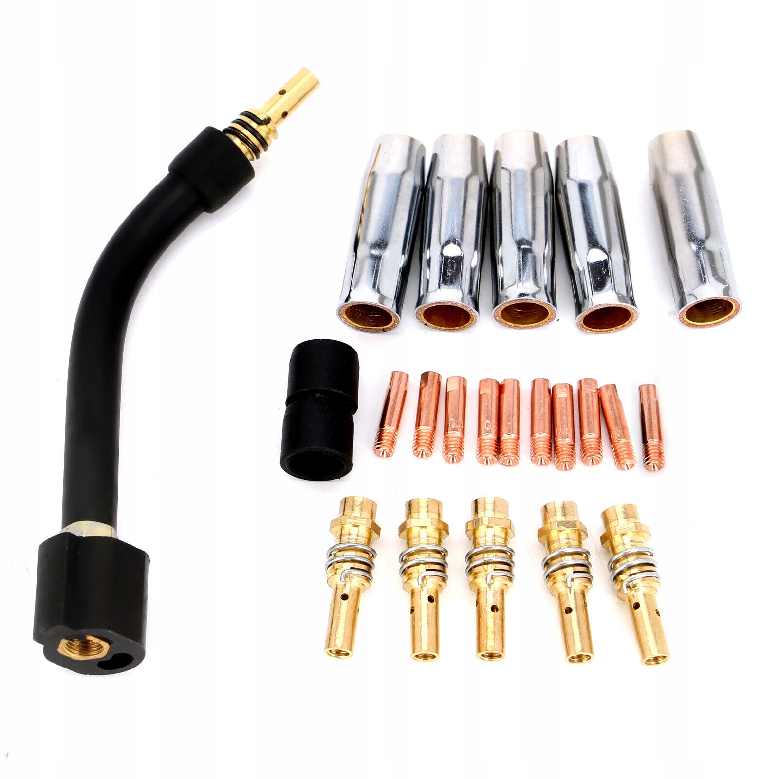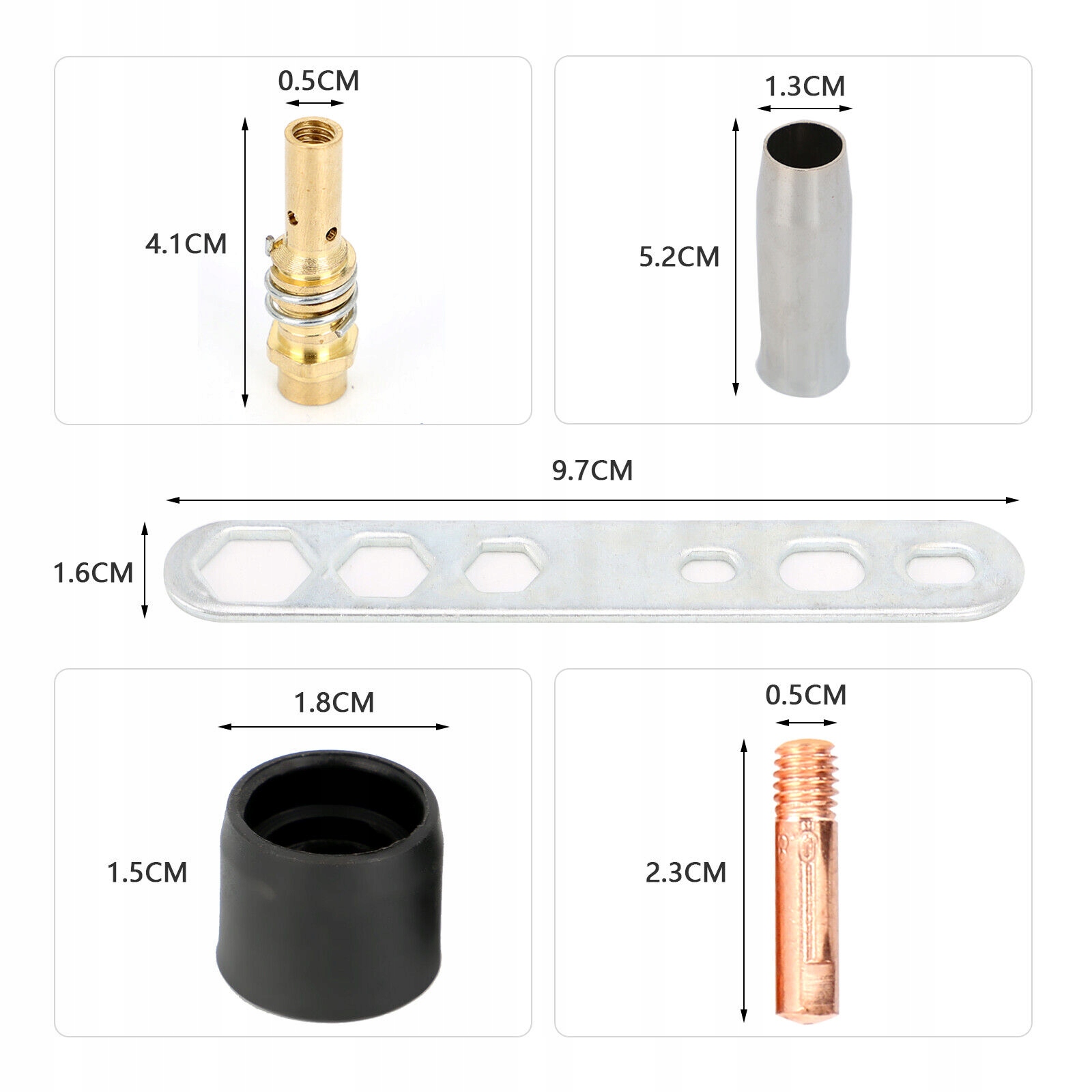 Високоякісні металеві матеріали: аксесуари для зварювальних пальників виготовлені з міді / хромованої міді, міцні та міцні та проводять тепло. На зварювальний пістолет можна легко встановити відповідний набір деталей, не турбуючись про розмір продукту!