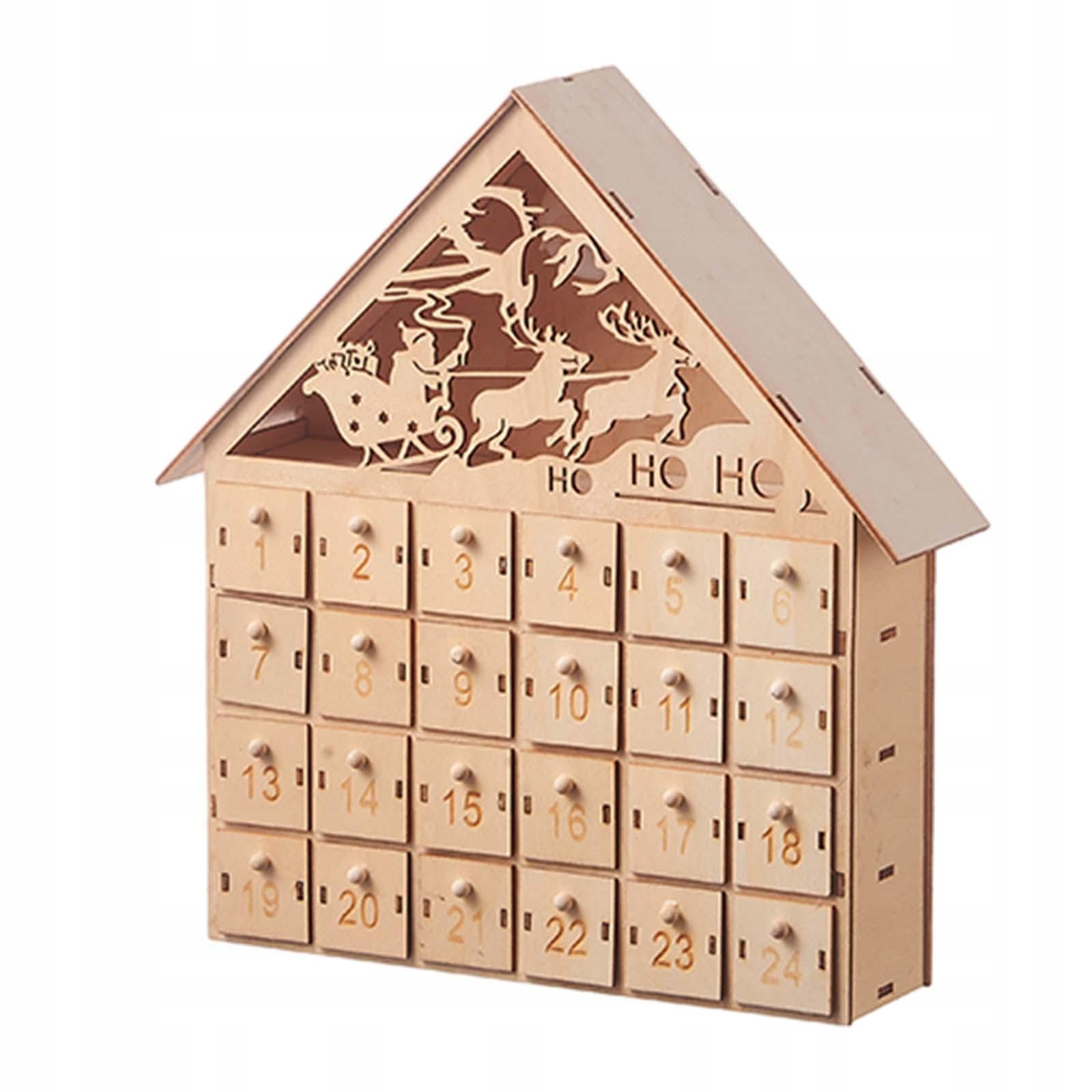 [Застосування]: дерев’яна прикраса календаря Адвент має 24 висувних ящика, у які можна покласти солодощі чи іграшки, тож щодня ви щось отримуватимете.