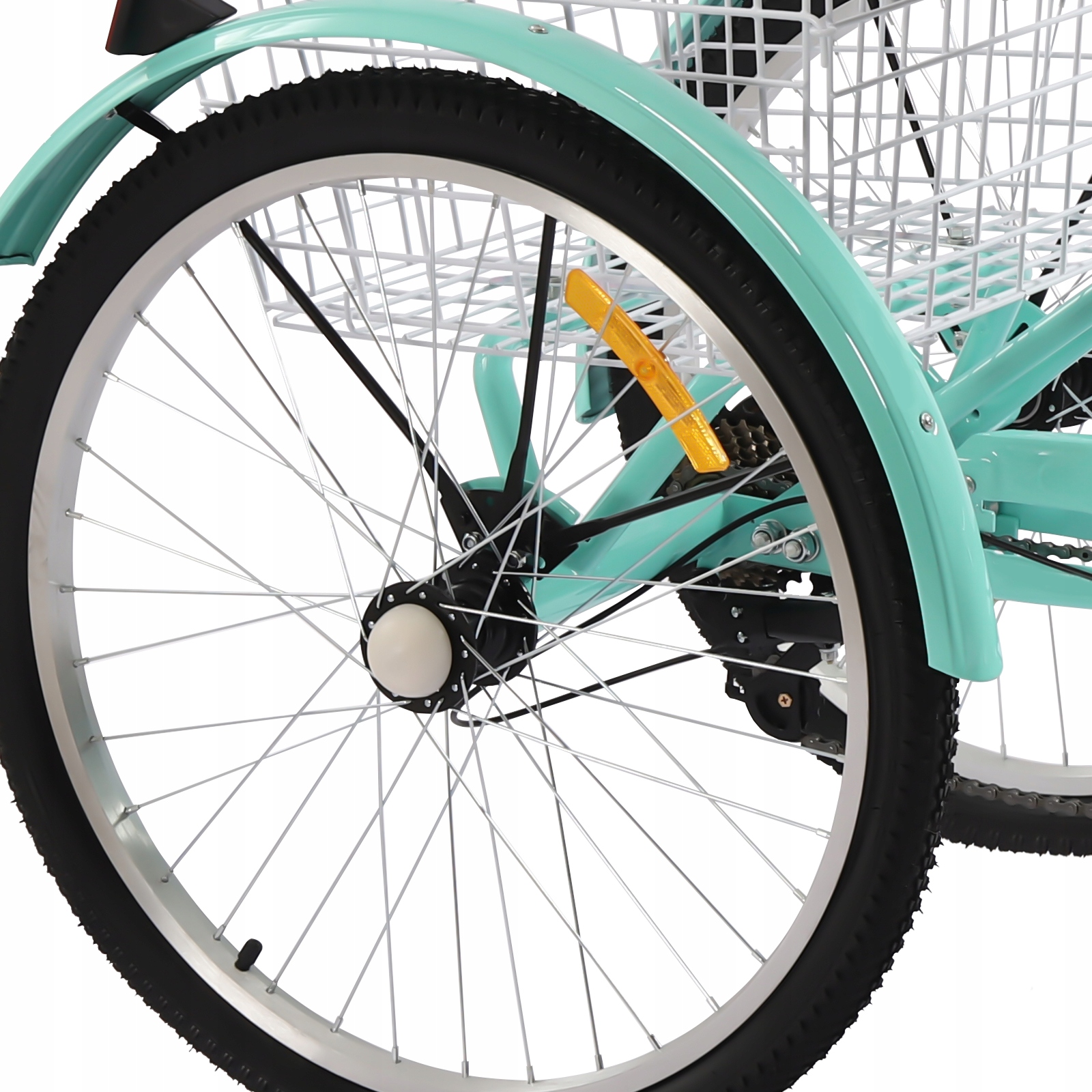 24" 7-позиційний складний триколісний велосипед з кошиком (бірюзовий)