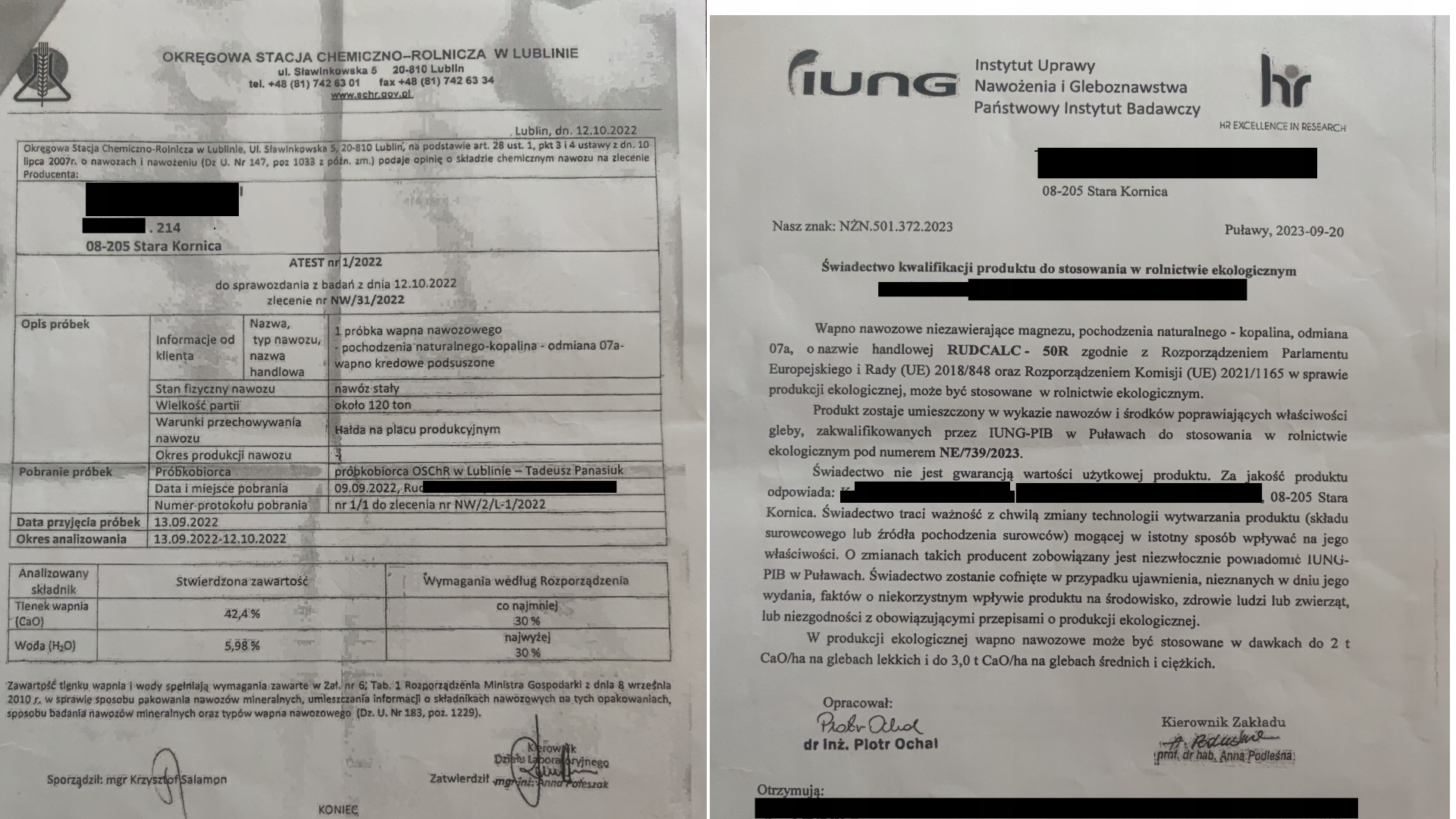 Сорт 07a з торговою назвою RUDCALC - 50R відповідно до Регламенту (ЄС) 2018 р. Європейського Парламенту та Ради/ 848 та Регламенту Комісії (ЄС) 2021/1165 щодо органічного виробництва, можна використовувати в органічному сільському господарстві та аквакультурі.