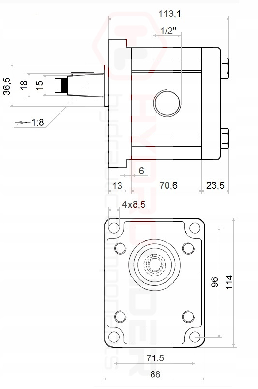 - Забережна з'єднання: внутрішня нитка BSP 1/2"