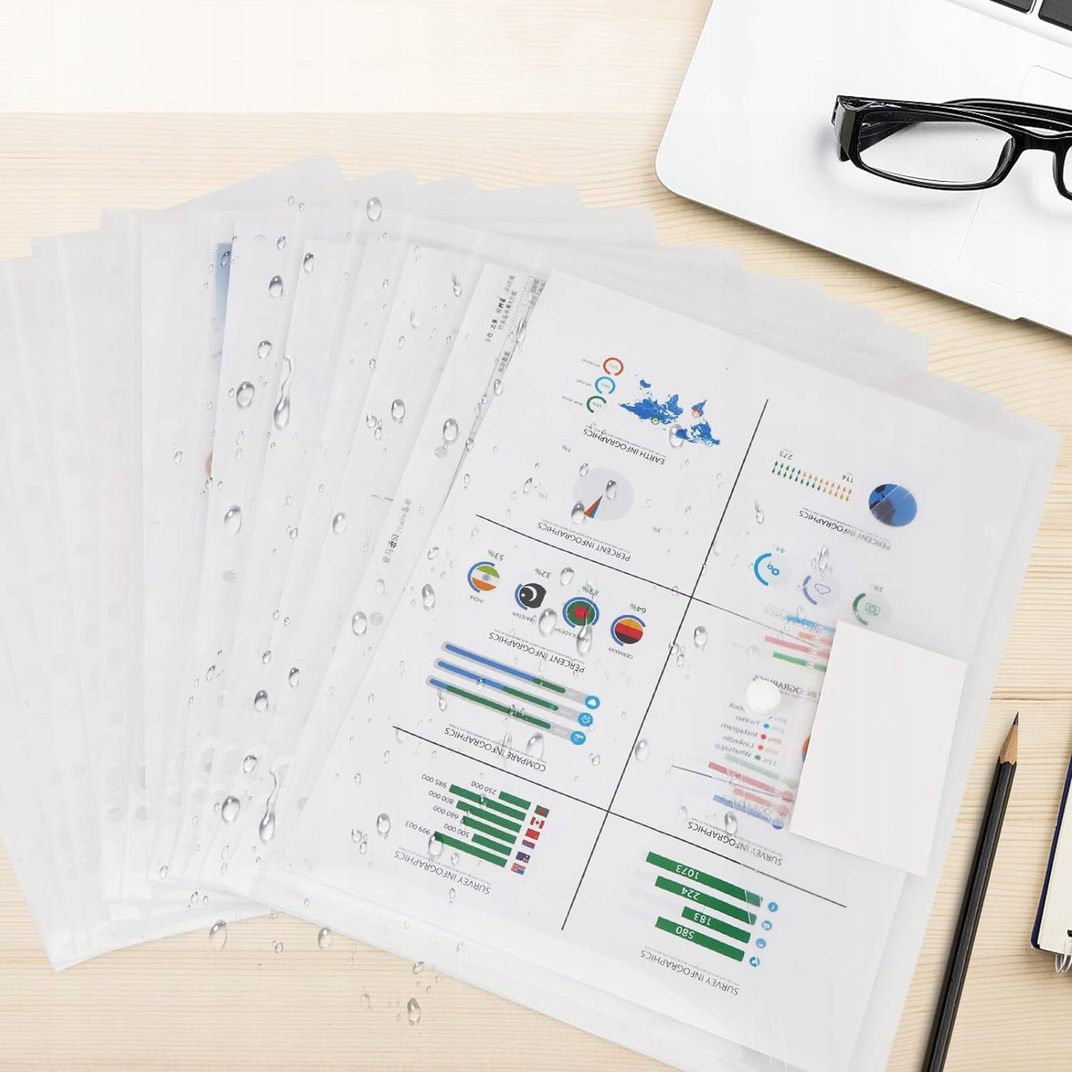 Прозорий прозорий корпус A4 має розміри 29,5 х 23,5 см (A4) . з більшою ємністю розміщувати більше кишень для документів, ніж ті, що доступні на ринку.