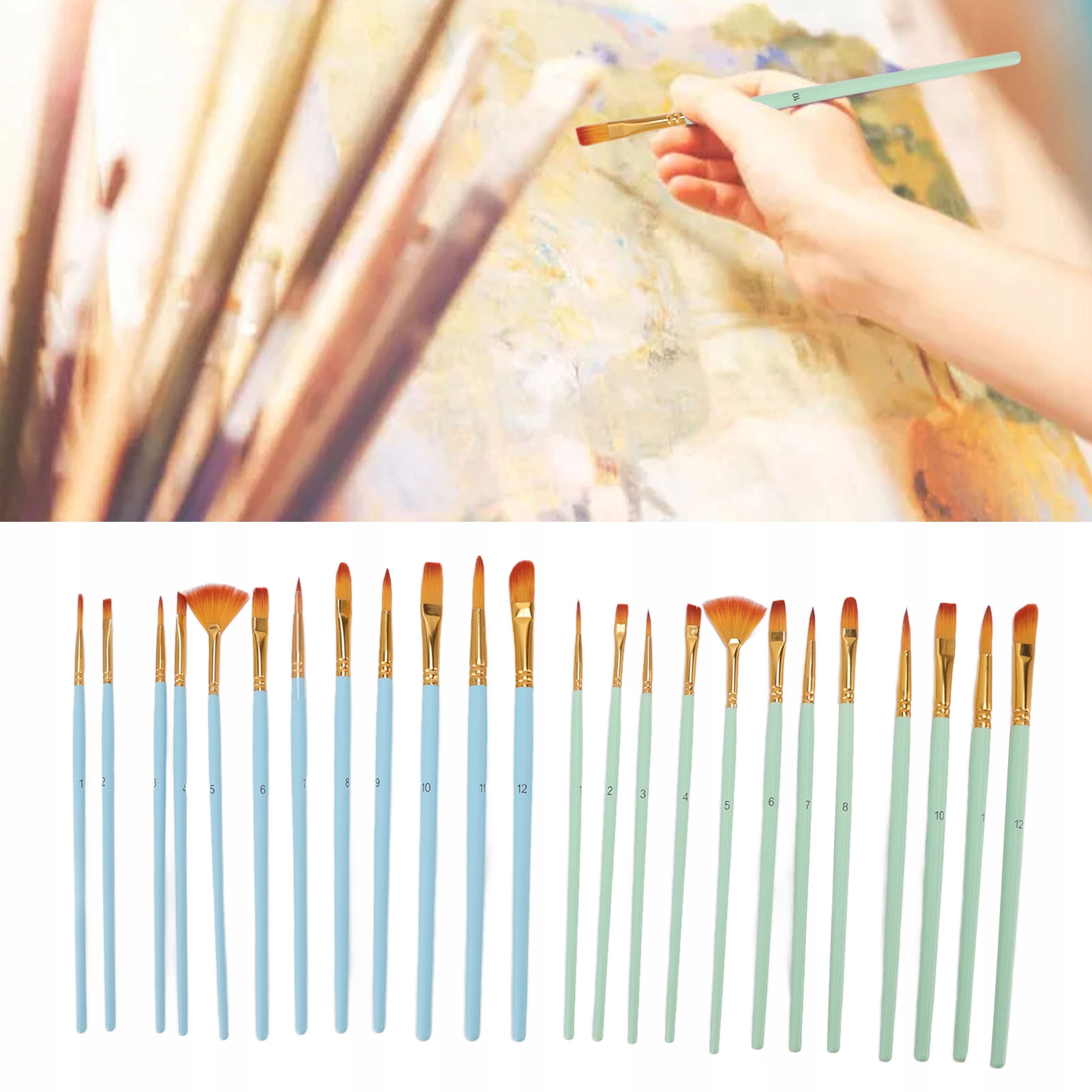 24 шт. Акрилові пензлі Нейлонове волосся Синьо-зелена дерев’яна ручка Широко використовувані художні пензлі для форми для творчості обличчя