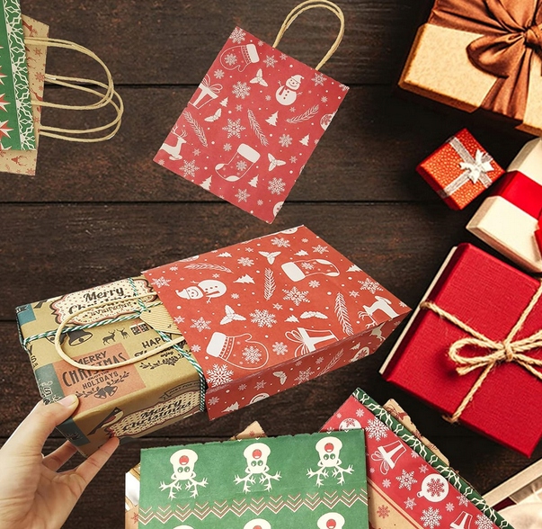 Ці різдвяні паперові пакети чудово підходять для різдвяної вечірки, пакування різдвяних подарунків, покупок, товарів, весілля, бізнесу, ярмарку ремесел, також їх можна використовувати як щоденне використання для зберігання дрібниць.