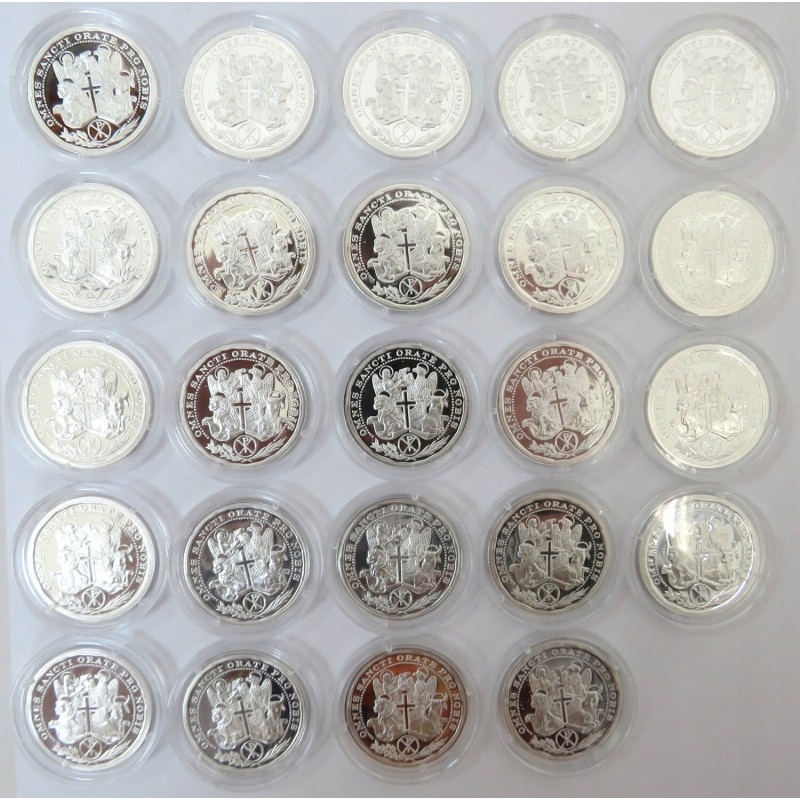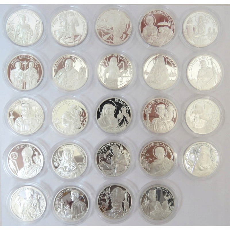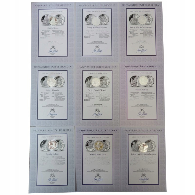 24 шт. x Найважливіші святі Церкви, срібло Ag999, касета, грамоти
