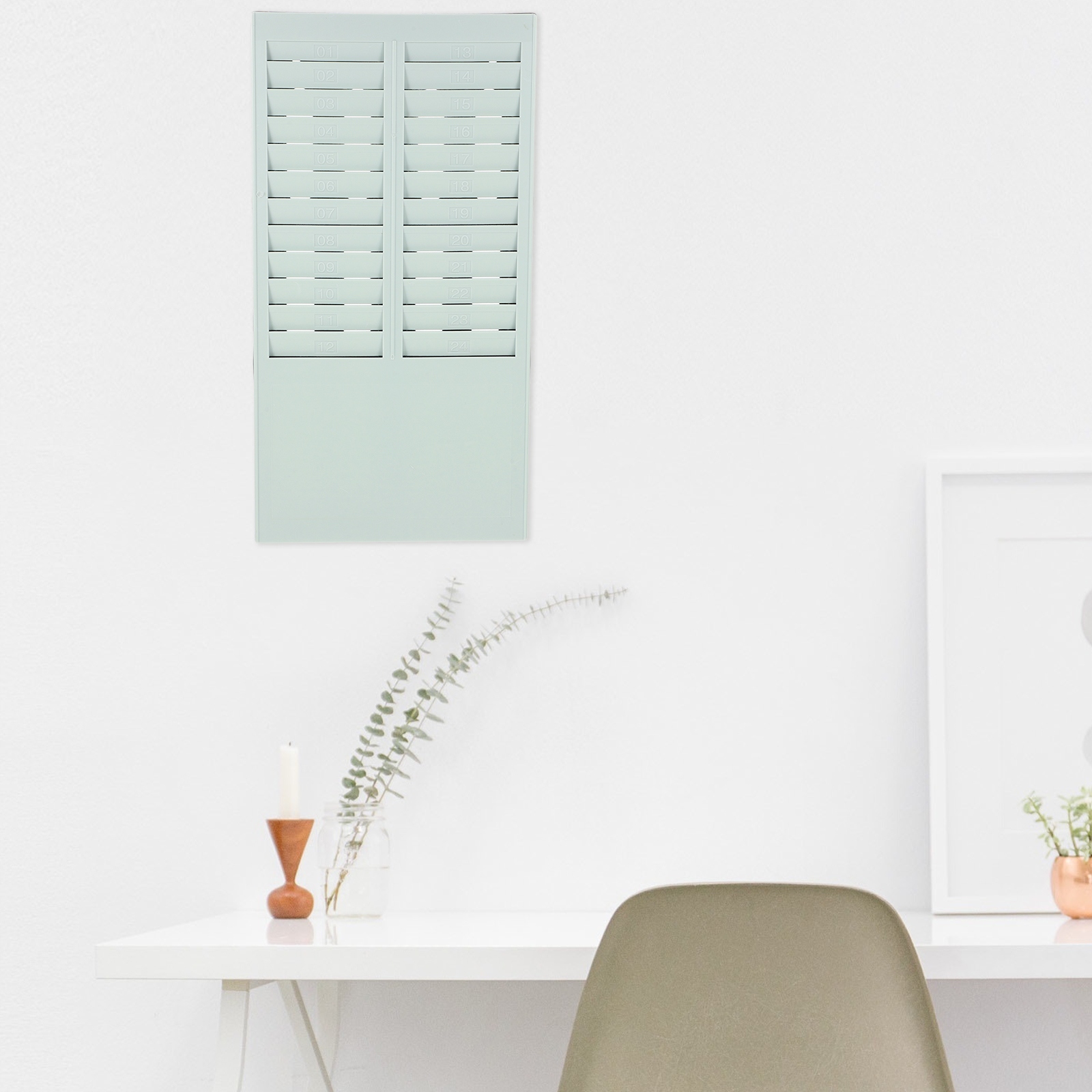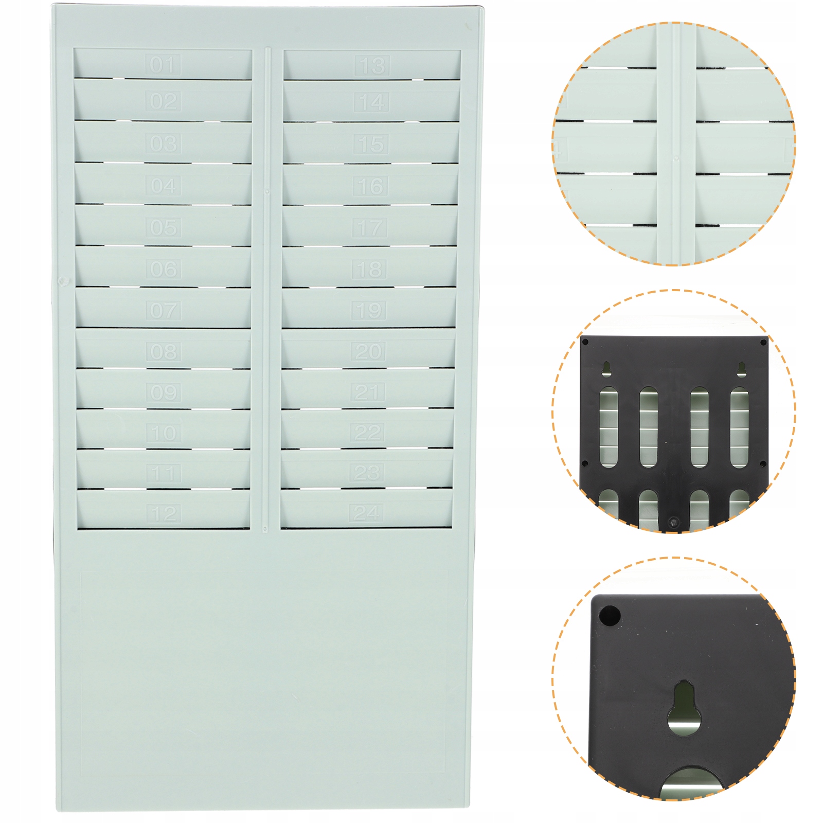 Він кріпиться на стіну, що зручно у використанні та легко знімається. Його можна встановити біля годинника або службового входу.