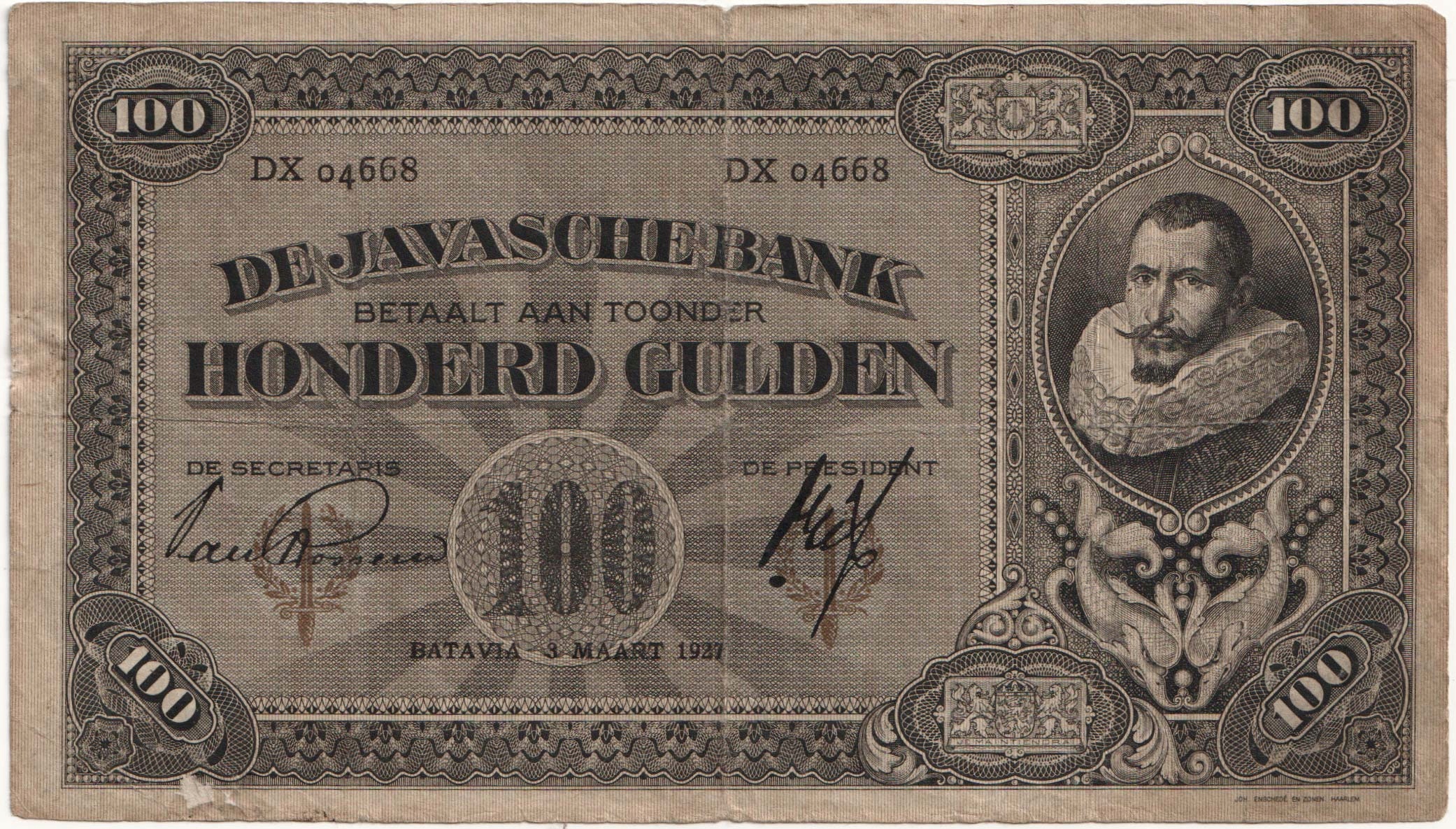 24.aj.Hol.Indie Wsch., 100 Гульденів 1927 рідкісний
