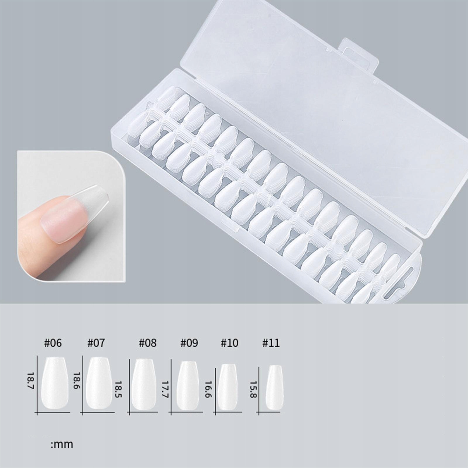Упаковка: містить 240 шт. 15 різних розмірів прозорих матових накладних кінчиків нігтів із повним покриттям.