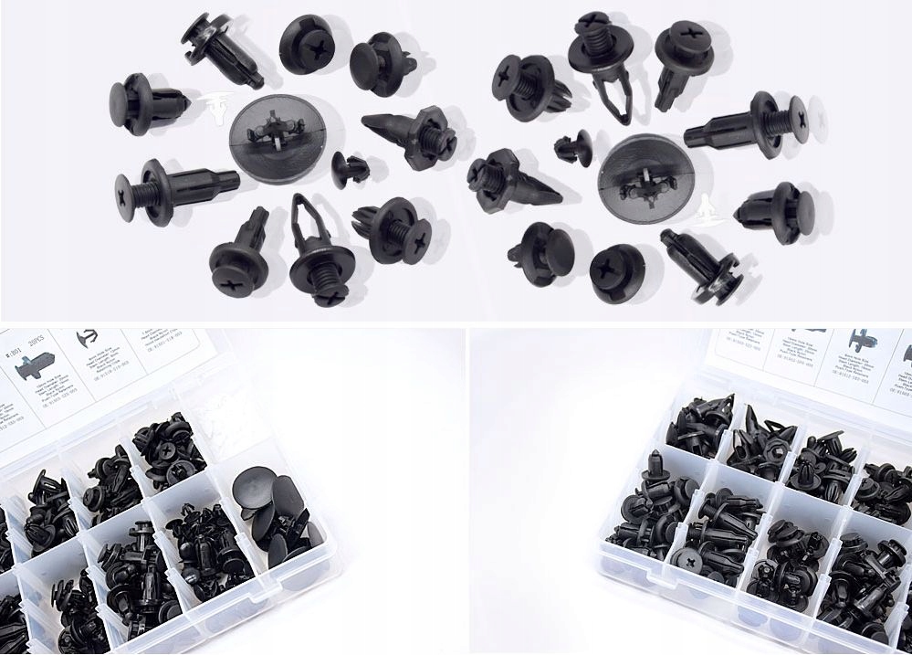 Набір затискачів та кріпильних шпильок 242 штуки універсальні в практичній коробці. Вони підходять, серед іншого: до: