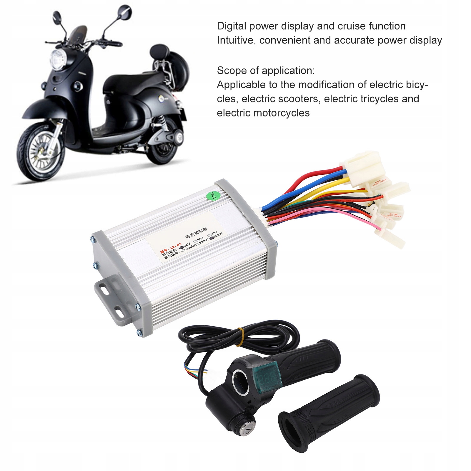 5. Модифіковані набори велосипедів: контролер двигуна з матовим двигуном та набір ручок дросельної заслінки підходять для модифікації електричних велосипедів, скутерів, трьох -Kirts та інших електричних велосипедів.