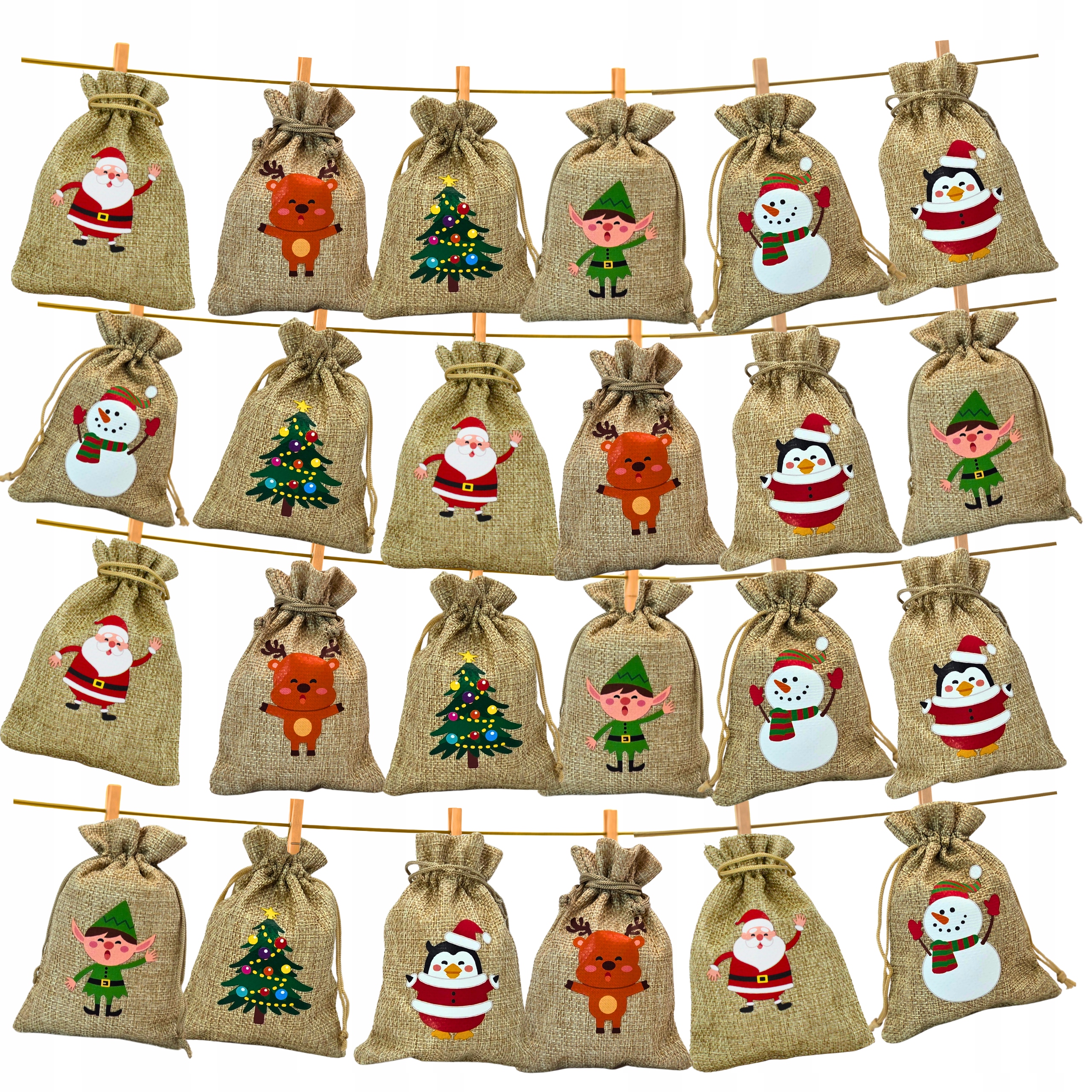 24x ДЖУТОВІ РІЗДВЯНІ МІШКИ 10x14см ЛЛЯНИЙ АДВЕНТ-КАЛЕНДАР РІЗДВО