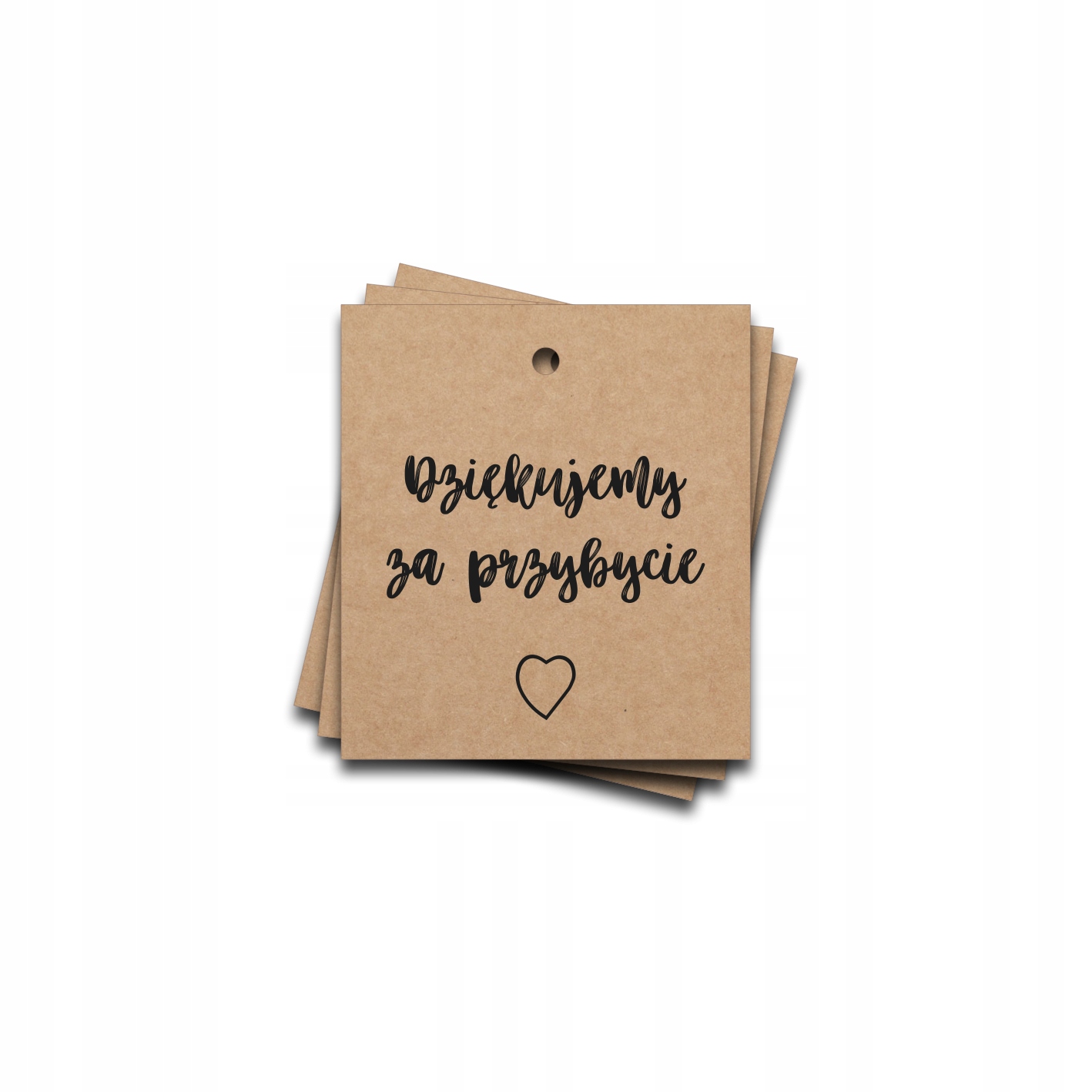 Набір з 24 етикеток з одностороннім друком на крафтовому папері. Етикетки мають каліграфічний напис Дякуємо, що прийшли.