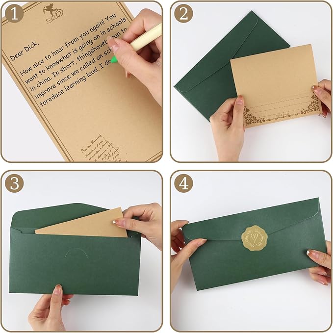 Цей елегантний набір старовинного канцелярського приладдя, що складається з 24 конвертів для листів, є ідеальною пропозицією для людей, які цінують традицію писати листи і унікальний, ретро стиль. Набір ідеально підходить для створення запрошень, подяк або особистих листів на різні випадки життя. Кожен конверт розроблено з урахуванням вінтажної естетики, що надає кожній кореспонденції елегантного та унікального характеру.