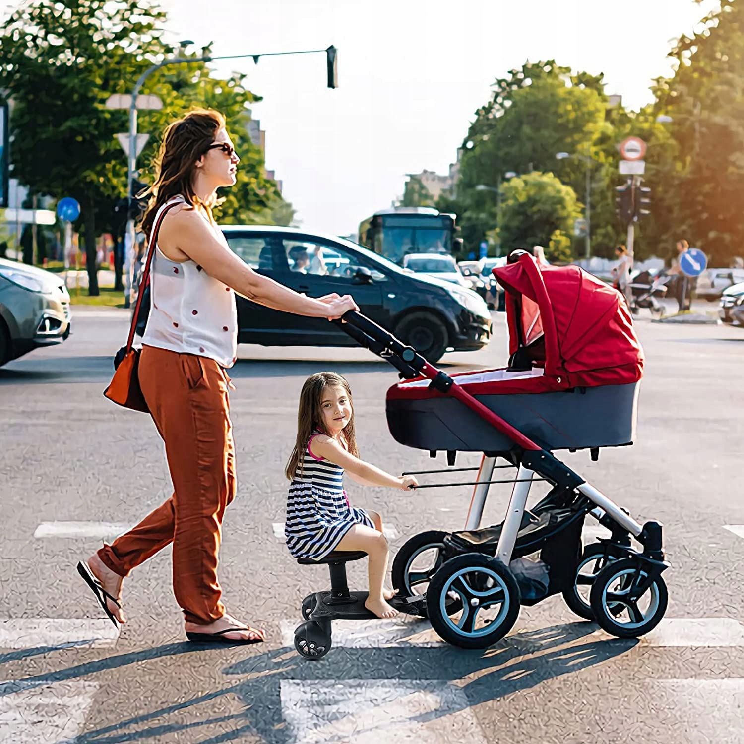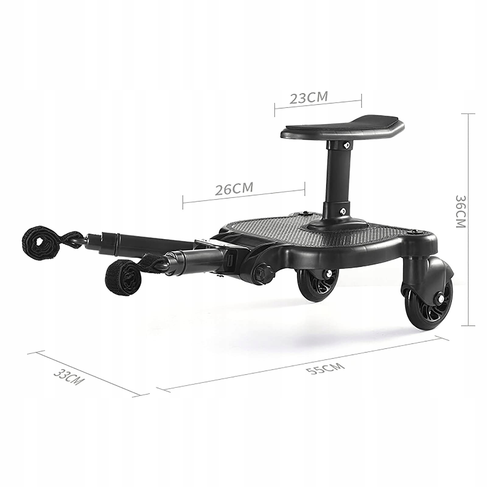 Універсальна пішохідна плата повністю регулюється і має зручну підтримку. Відстань між двома з'єднувальними стрижнями може бути скорочена або розширена залежно від різної ширини візки.