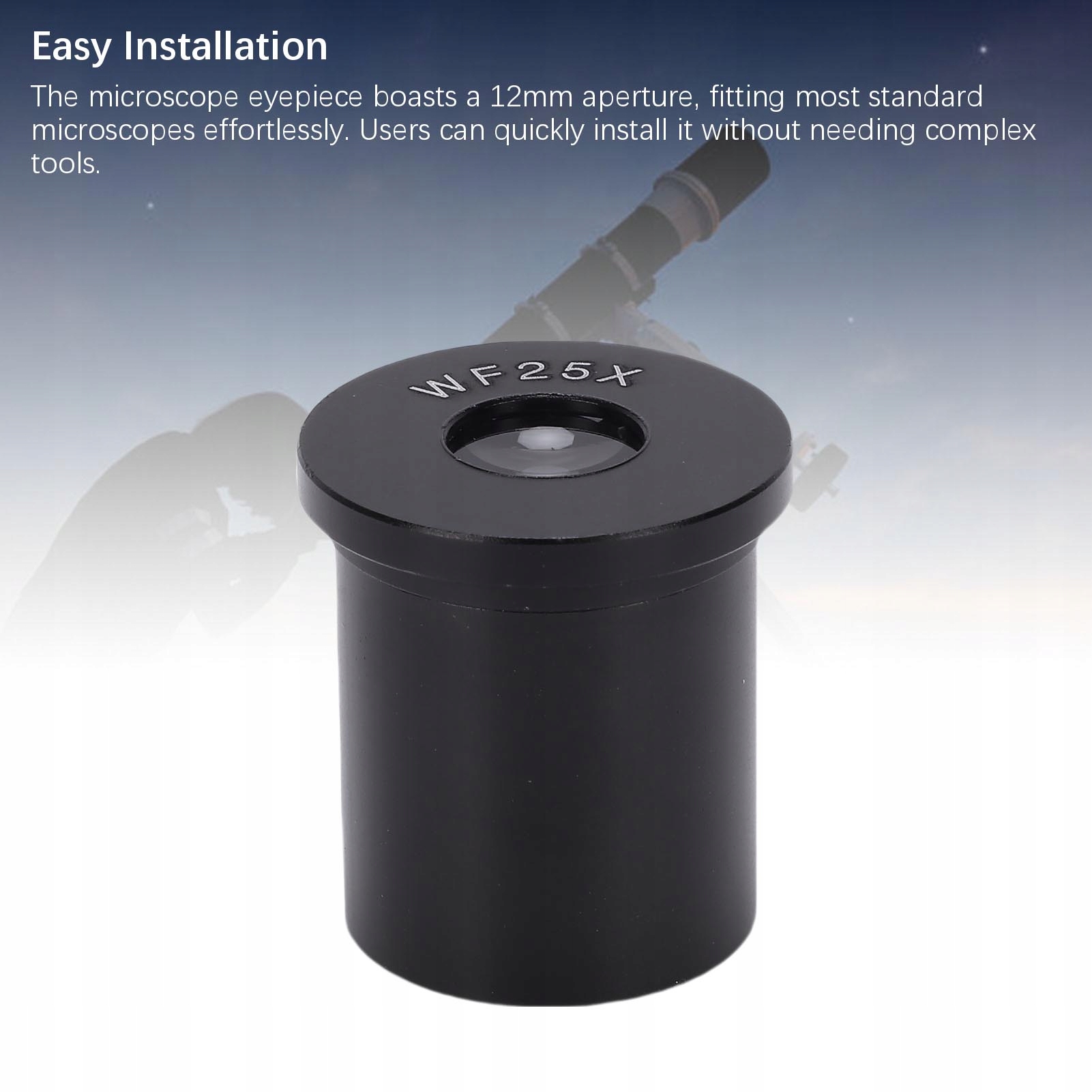 4. Легке встановлення: окуляр мікроскопа має отвір діаметром 12 мм, який легко підходить для більшості стандартних мікроскопів. Користувачі можуть швидко встановити його, не потребуючи складних інструментів.