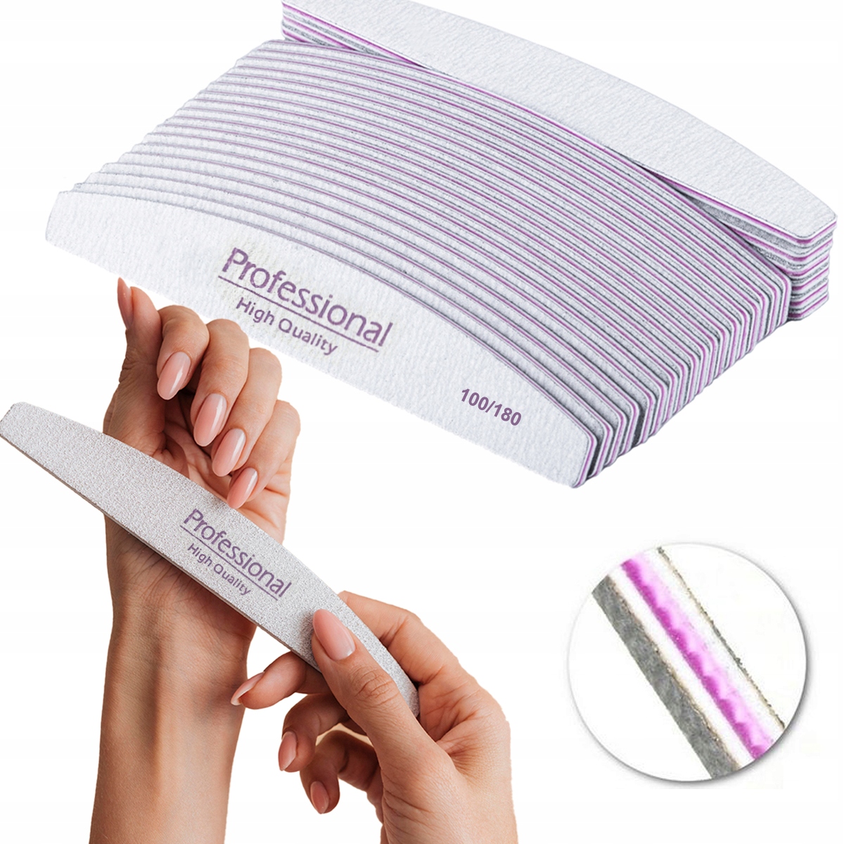 Одноразові пилки для нігтів з градацією 100/180, призначений для професійного використання. Пилочки призначені для роботи з гелевою та акриловою масою, рекомендовані для процедур, що вимагають ефективного та безпечного підпилювання, укорочення, а також для попередньої обробки нігтів.