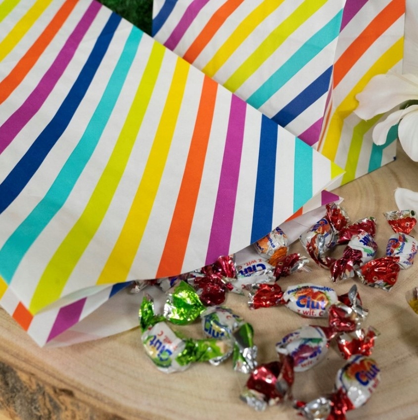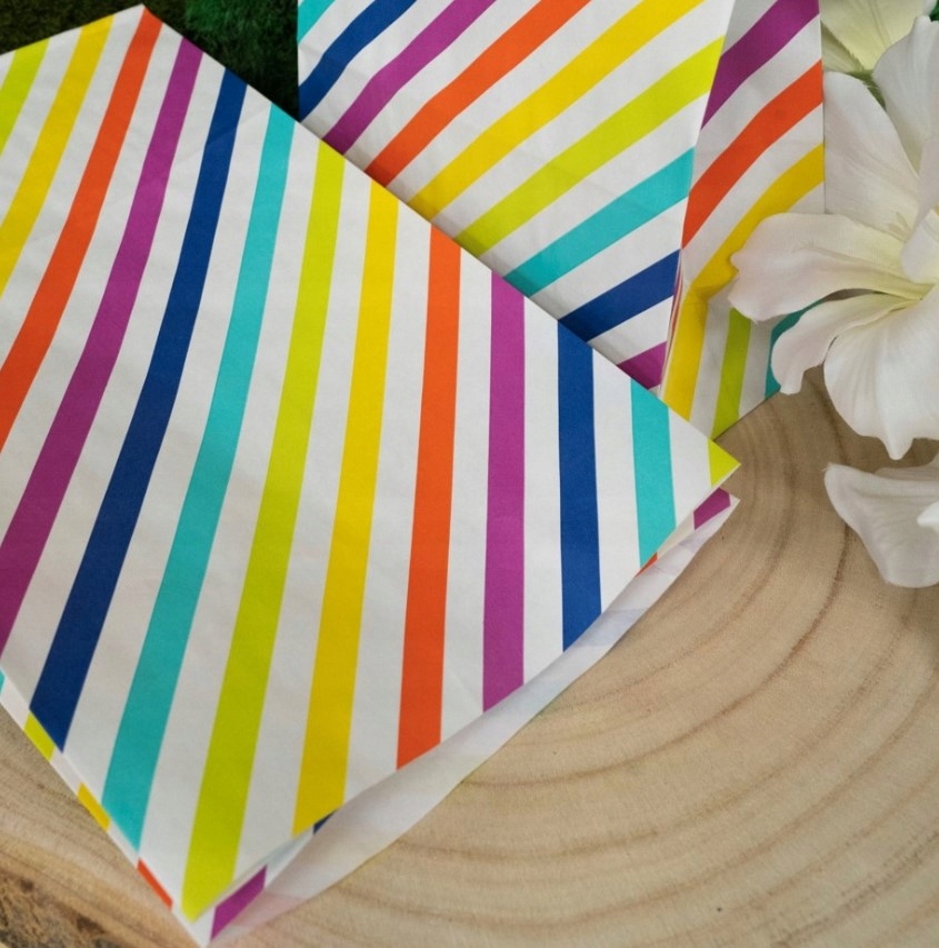 25 X Паперові пакети 16x8x27 см барвисті блокові смуги для солодощів