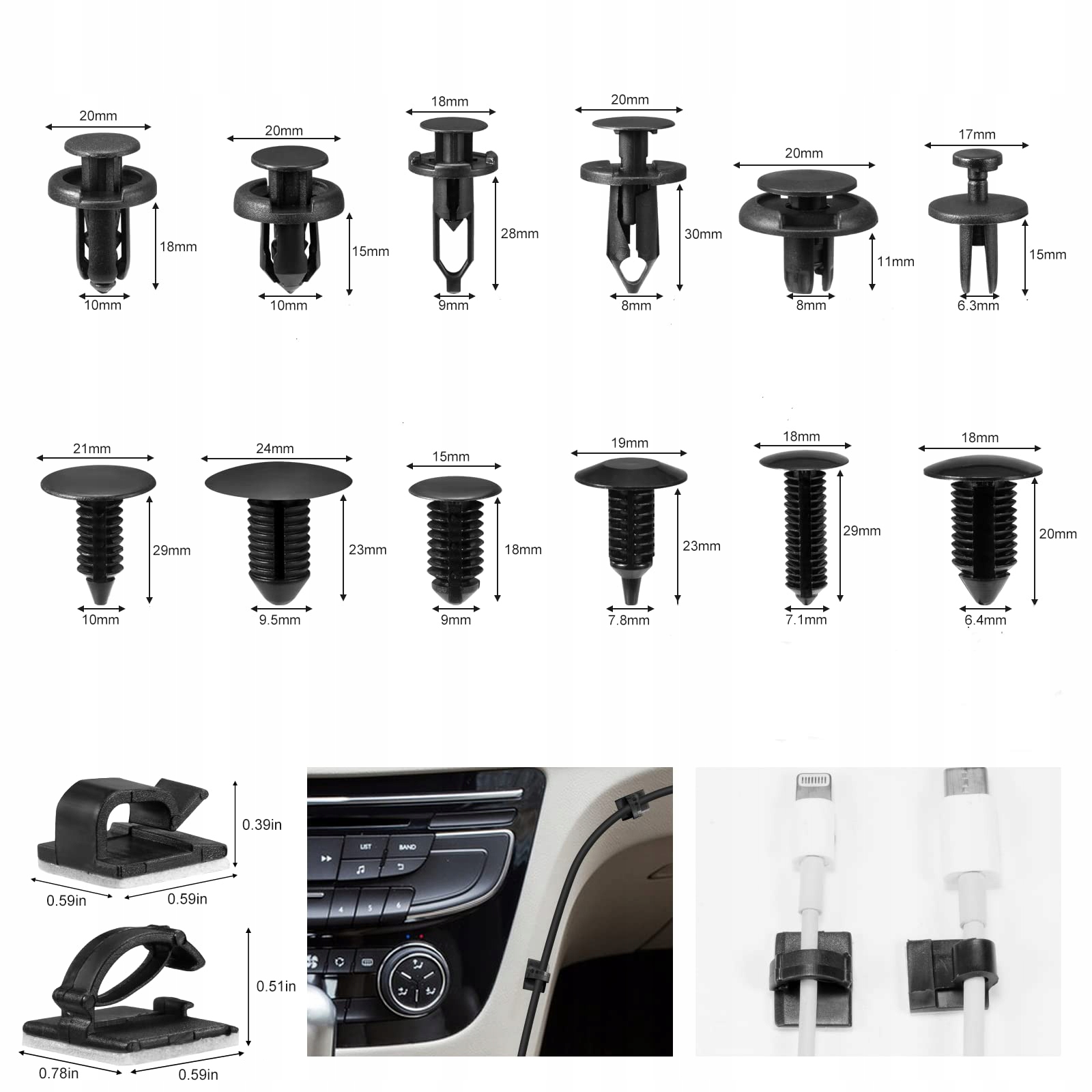 - ???Багато аксесуарів і практичне зберігання? Вміст поділено на 11 x Набір інструментів для зняття автомобільних затискачів, 120 x затискачів для кріплення автомобіля, 20 x клейкі затискачі для кабелю, 8 x ковпачки клапанів, 40 x губчасті подушки, 20 x кабельні стяжки, 3 x інструмент для важеля та портативна сумка. Легко носити, легко зберігати.